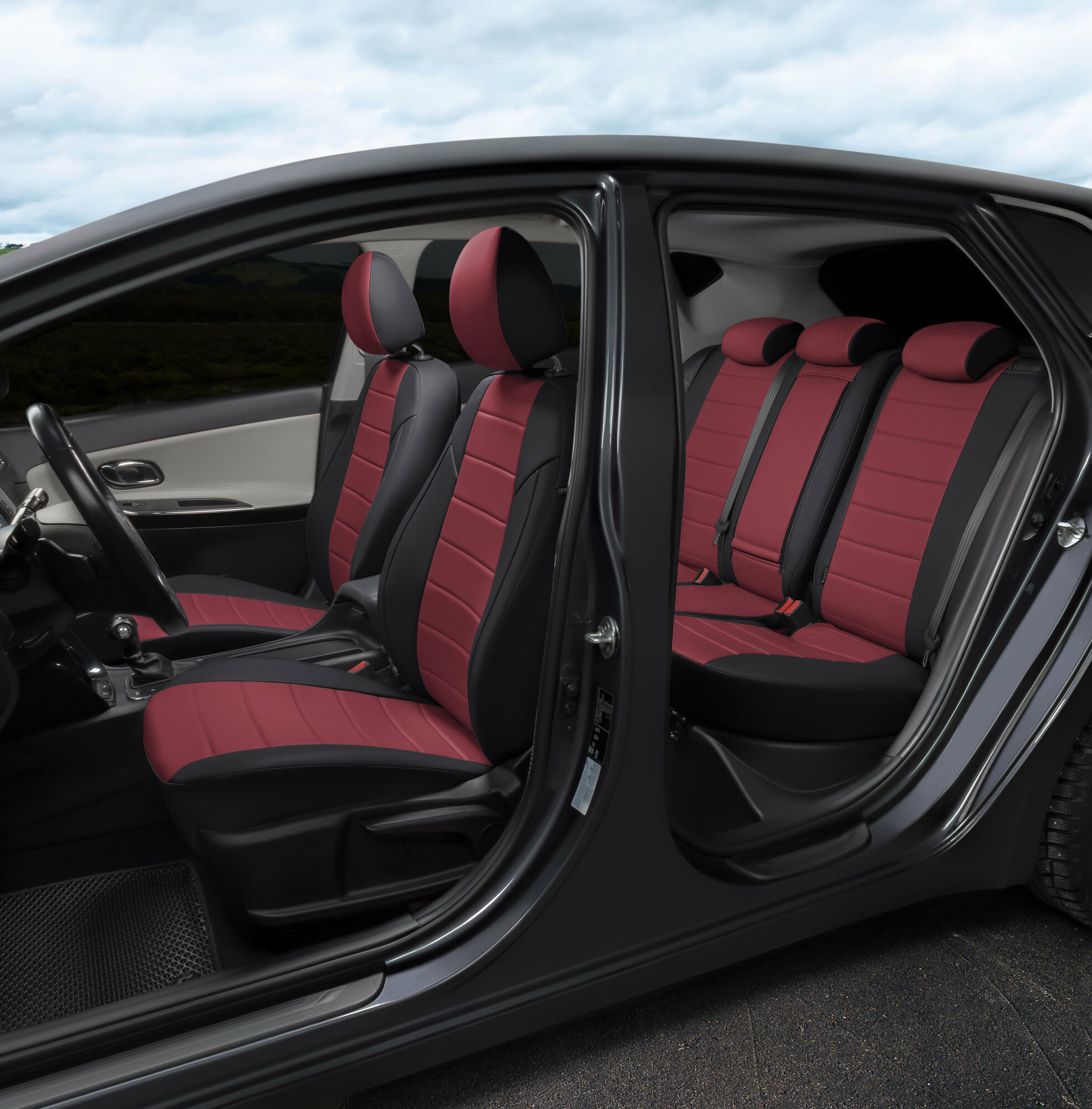 Чехлы на автомобильные сидения LADA Vesta / Vesta SW Cross / Vesta NG (Экокожа, Черный + Бордовый)
