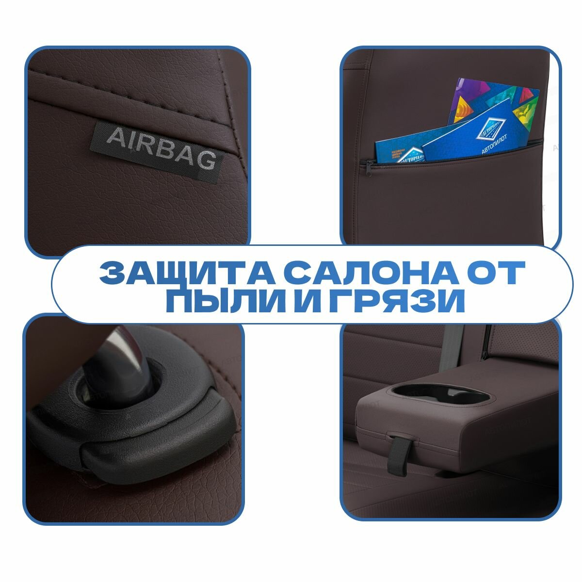 Комплект чехлов Автопилот Экокожа Chevrolet Cobalt с 11г. / Ravon R4 с 16г. Темно-коричневый + Темно-коричневый