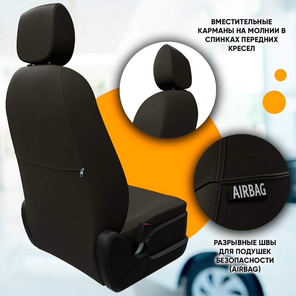Модельные авточехлы Пилот Авто для Chevrolet Cobalt (с 2011г) / Ravon R4 (с 2016г) экокожа ромб, черные