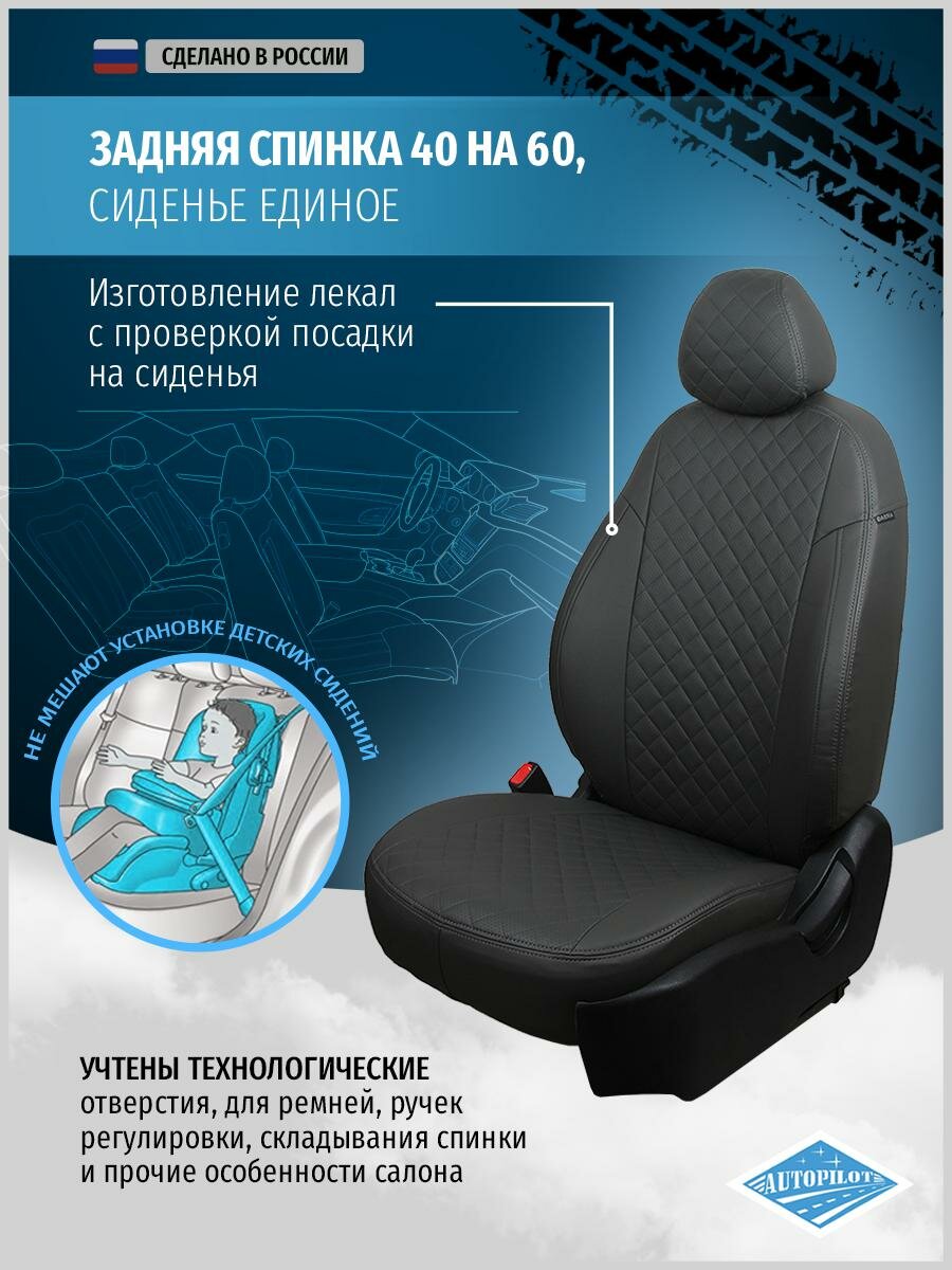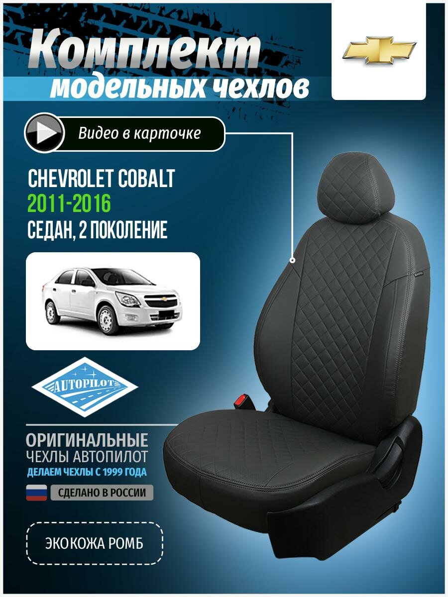Модельные авточехлы АВТОПИЛОТ для Chevrolet Cobalt (с 2011г) / Ravon R4 (с 2016г) экокожа ромб, серо-черные