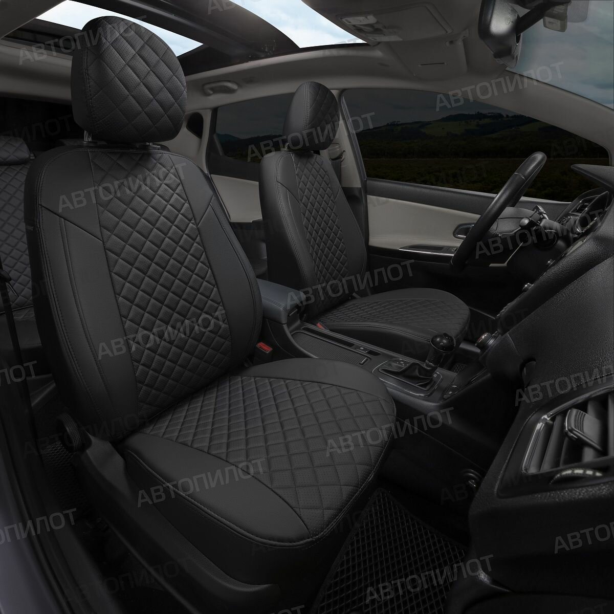 Комплект чехлов АВТОПИЛОТ из экокожи для Mitsubishi L200 4, ромб, темно-серый