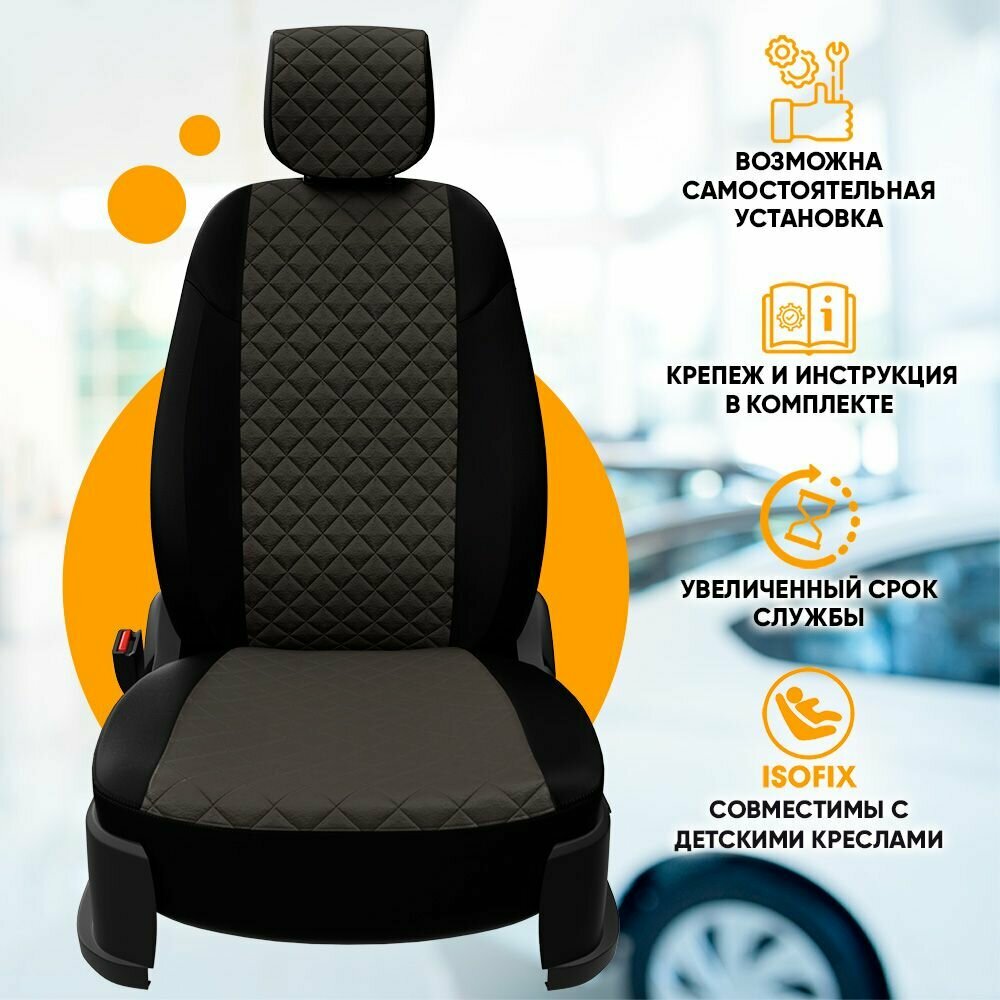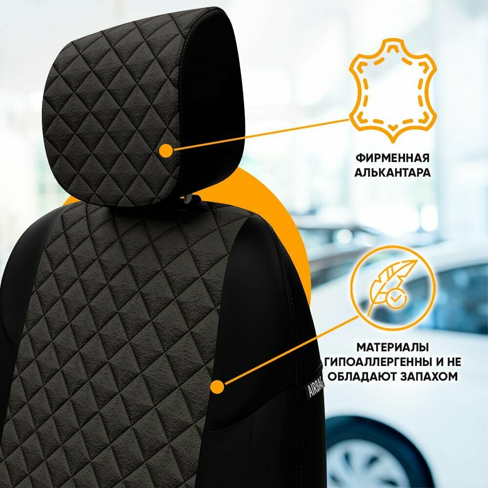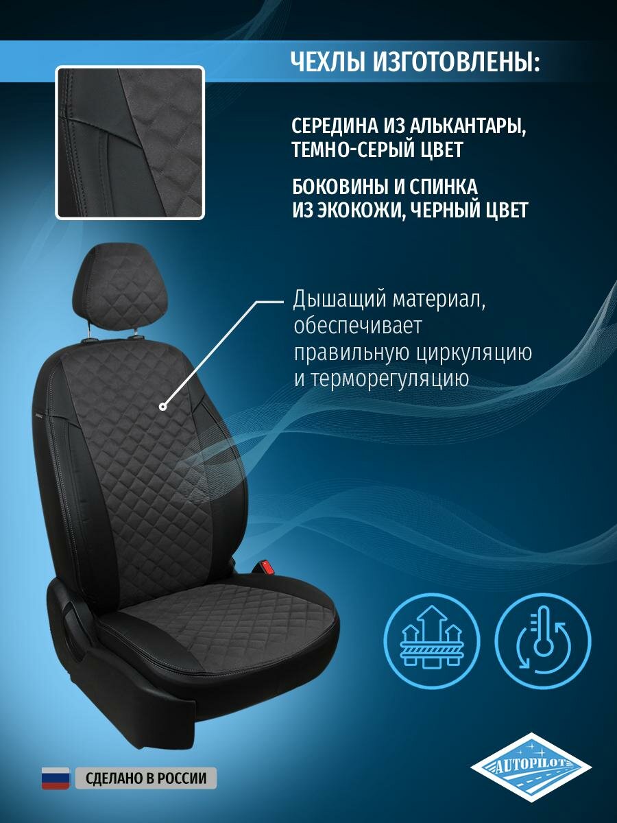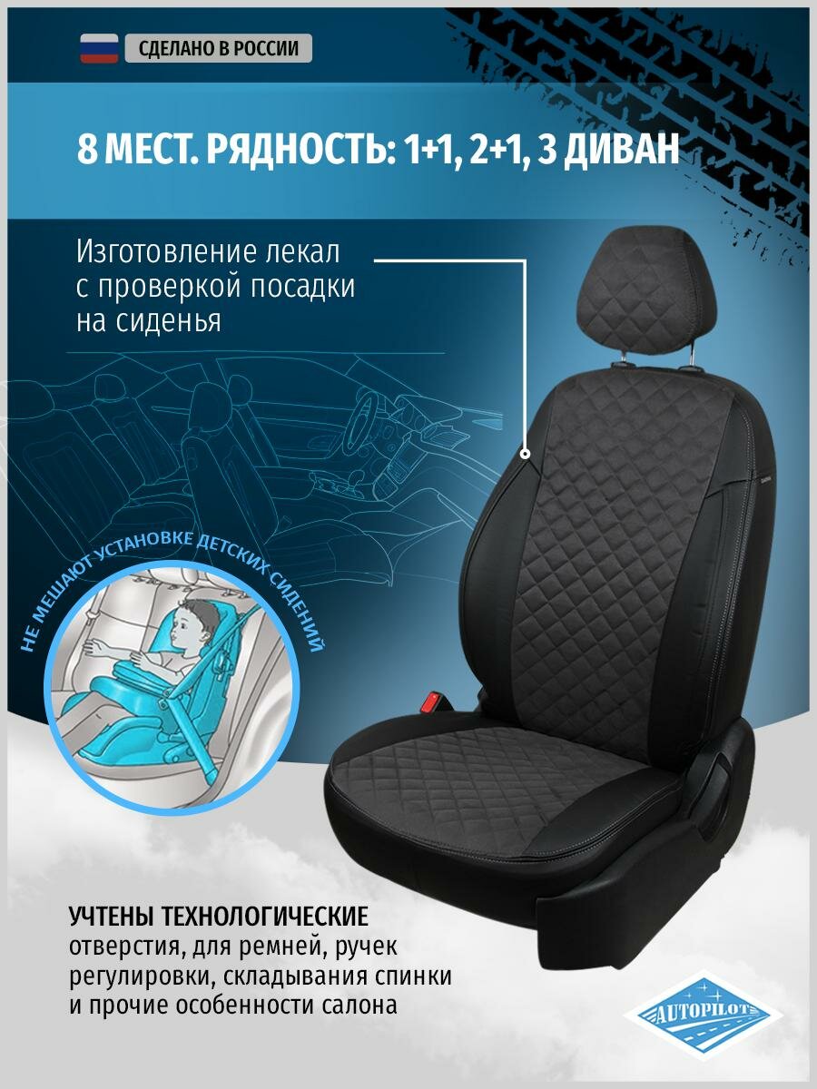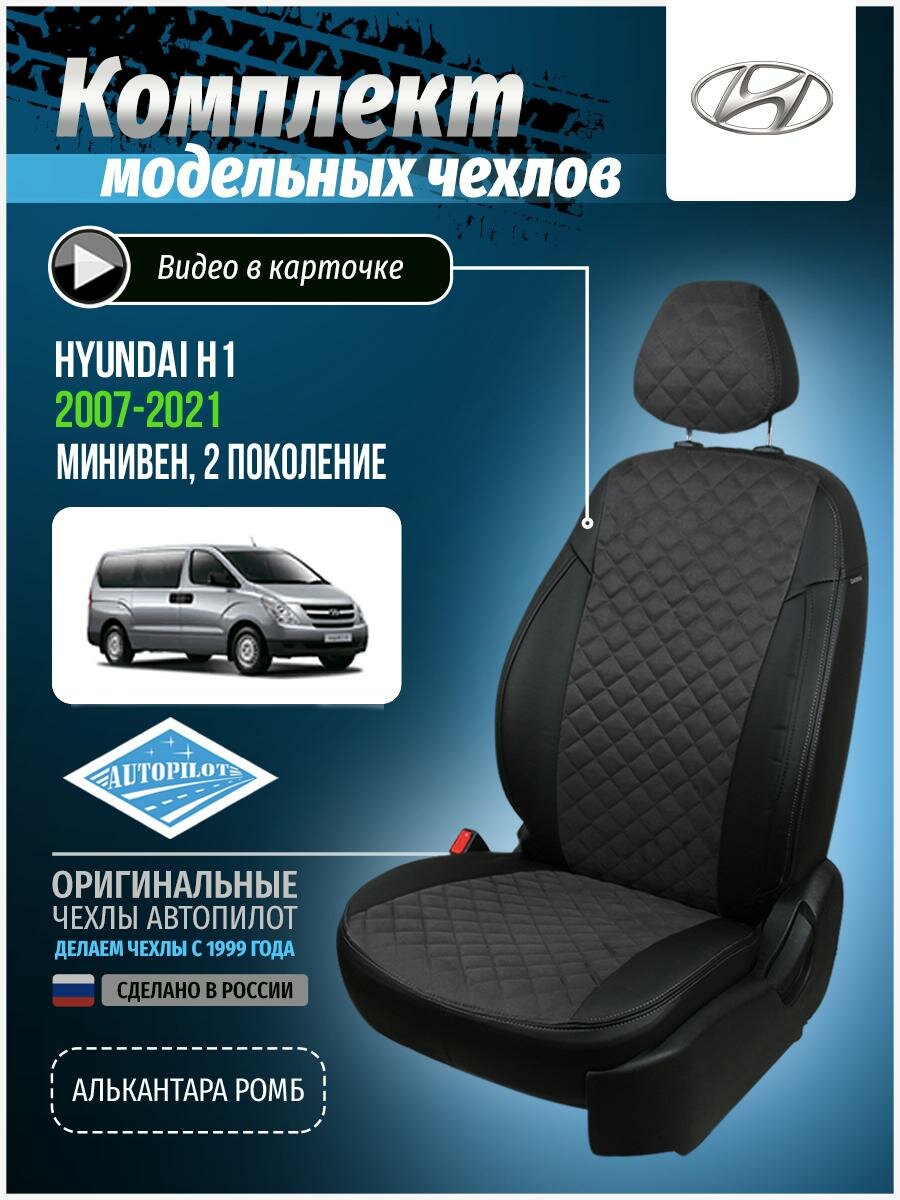 Комплект чехлов АВТОПИЛОТ из алькантары для Hyundai Starex (H-1), ромб, черный/бежевый