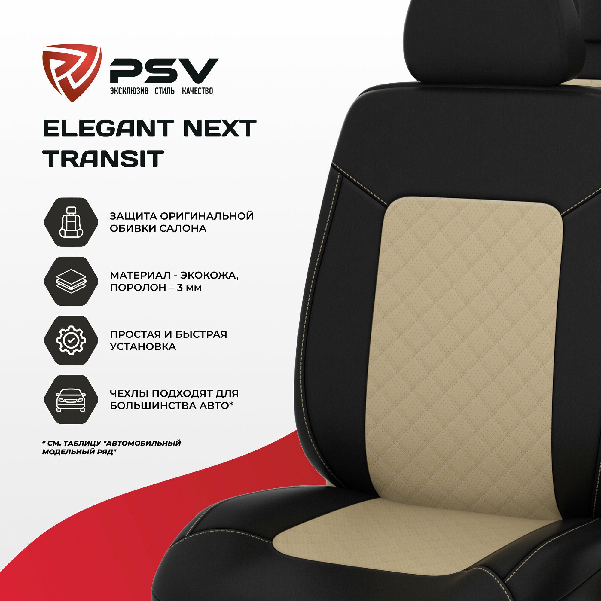 Чехлы PSV Elegant Next Transit передние экокожа ромб черно-бежевые PSV 135662 | цена за 1 шт