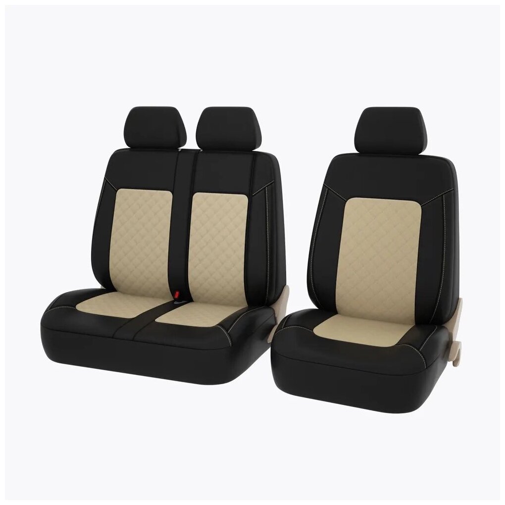 СохранитьЧехлы в машину для коммерческого транспорта PSV Elegant Next TRANSIT (Чёрный-Бежевый), ромб + экокожа 135662 интересное: