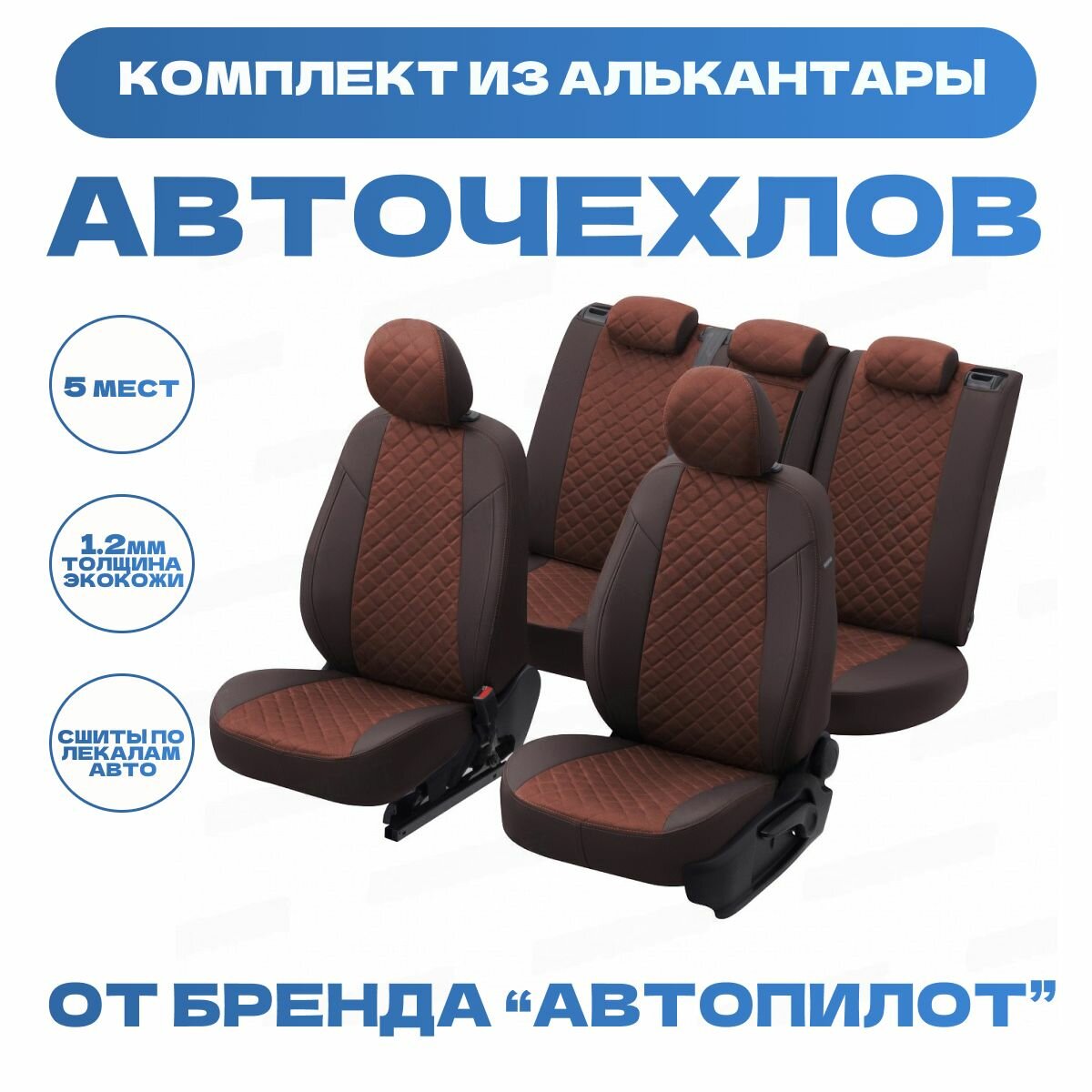 Комплект чехлов Автопилот Алькантара ромб Volkswagen Polo Sd (сплошной) с 09-20г. Коричневый + Коричневый