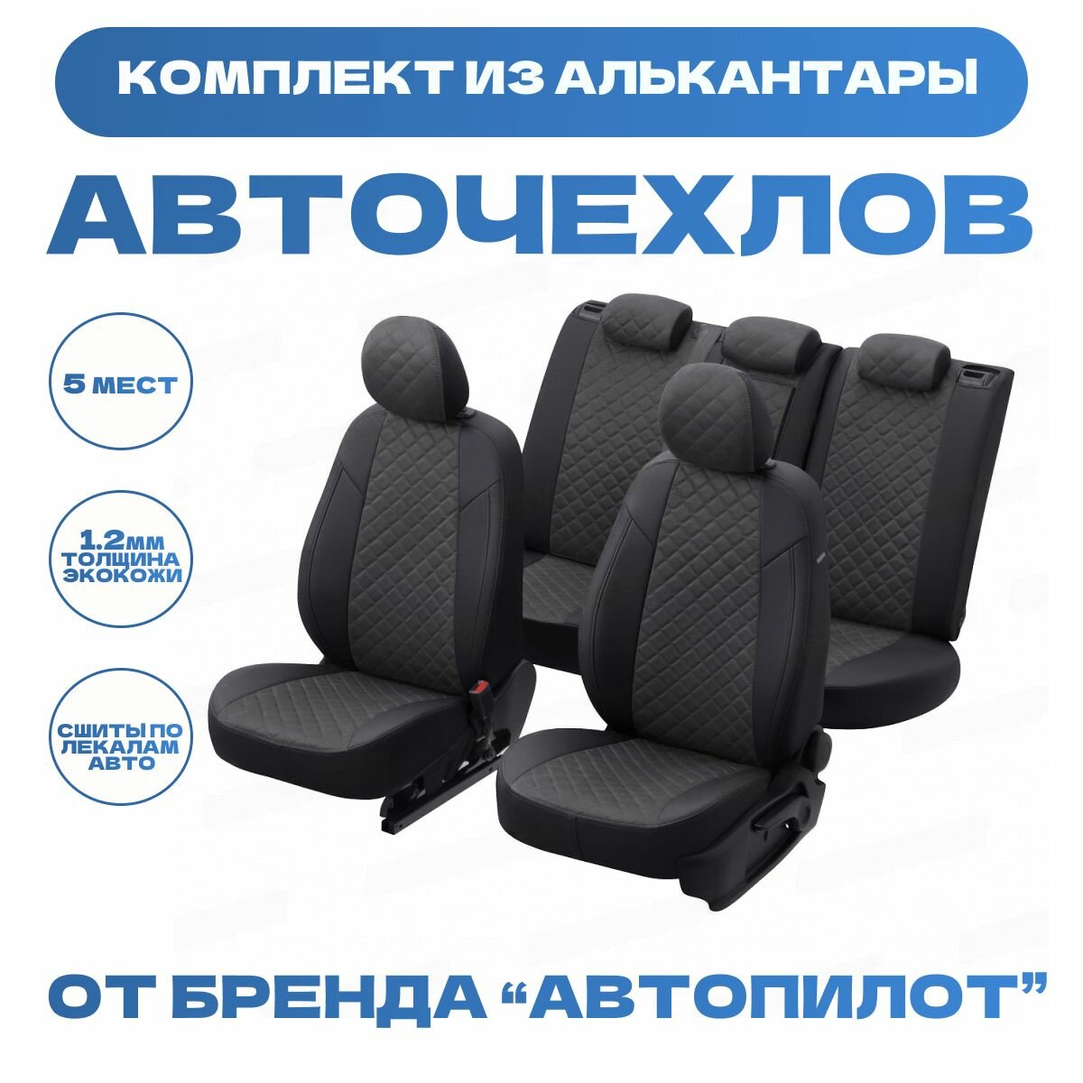 Комплект чехлов Автопилот Алькантара ромб Volkswagen Polo Sd (сплошной) с 09-20г. Черный + Темно-серый
