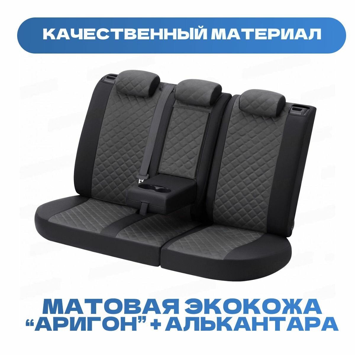 Чехлы на Volkswagen Polo 5 седан (2010-2020) 40/60, Алькантара Ромб, Черный + Темно-серый, Автопилот, vo-po-ps-chets-ar