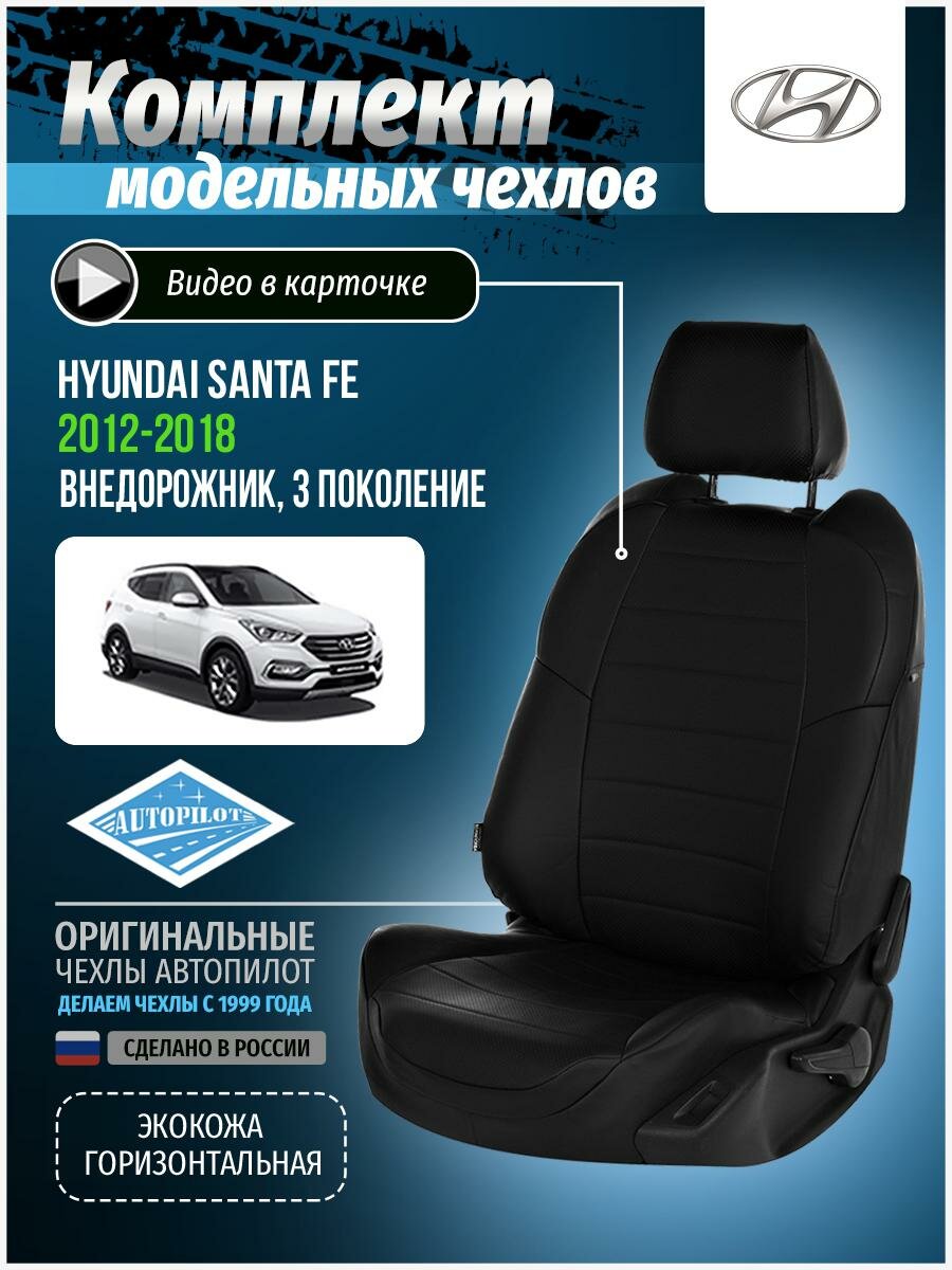 Чехлы для Hyundai Santa Fe 3 2012-2018 Автопилот Черный Экокожа kha-sf-sf3-chch-e