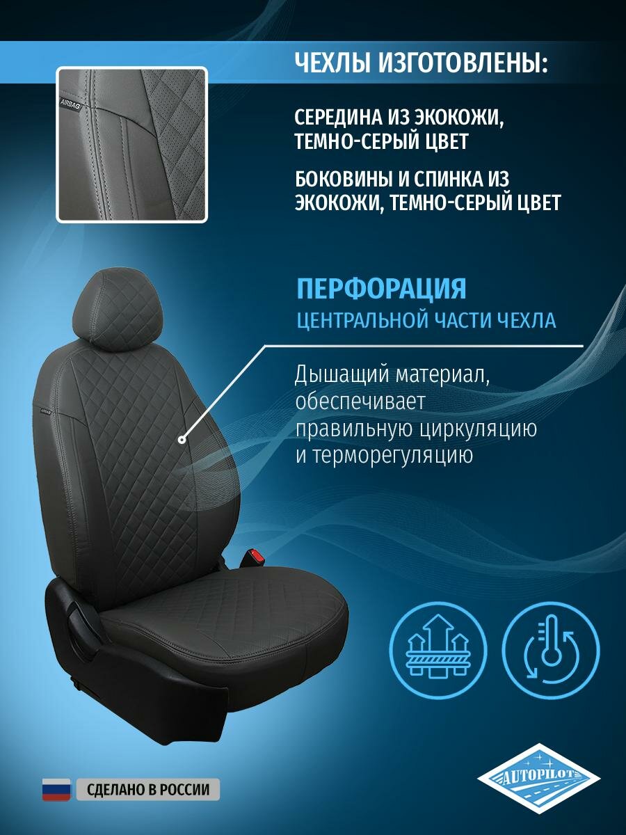 Комплект чехлов АВТОПИЛОТ из экокожи для Opel Astra H седан, хэтчбек, серый