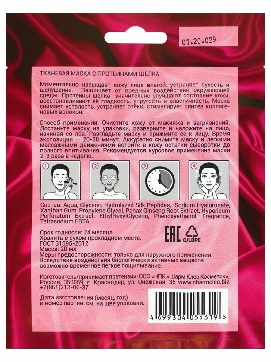 Charm Cleo Cosmetic. Тканевая маска с протеинами шелка