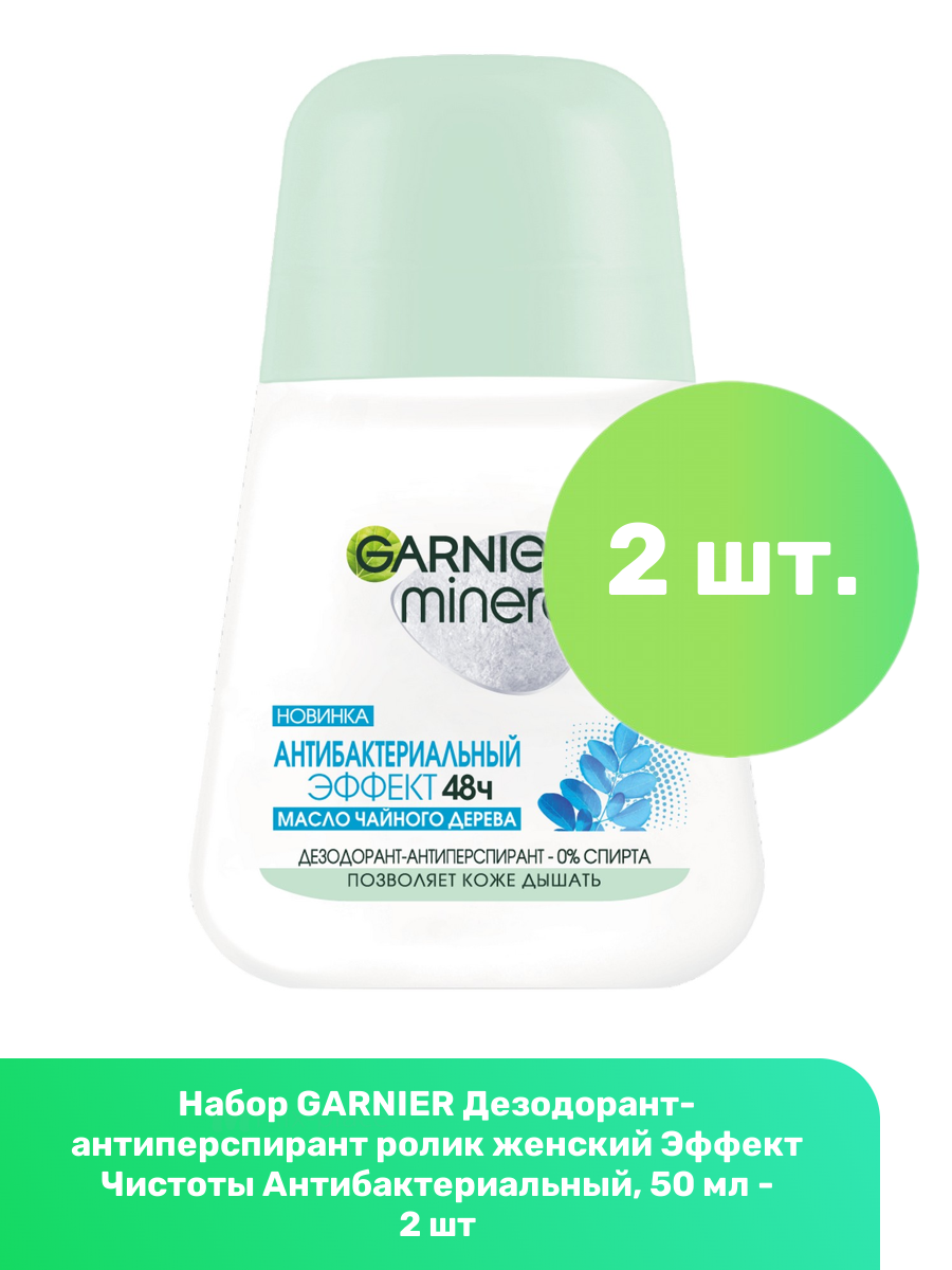 GARNIER Дезодорант-антиперспирант ролик женский Эффект Чистоты Антибактериальный, 50 мл - 2 шт интересное: