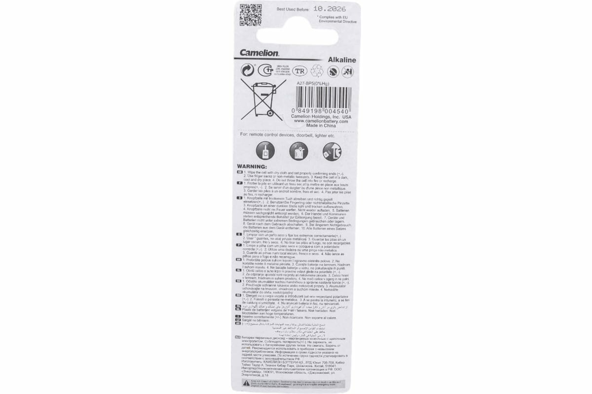 Camelion LR27A BL-5 Mercury Free (A27-BP5, батарейка,12В) (5 шт.)