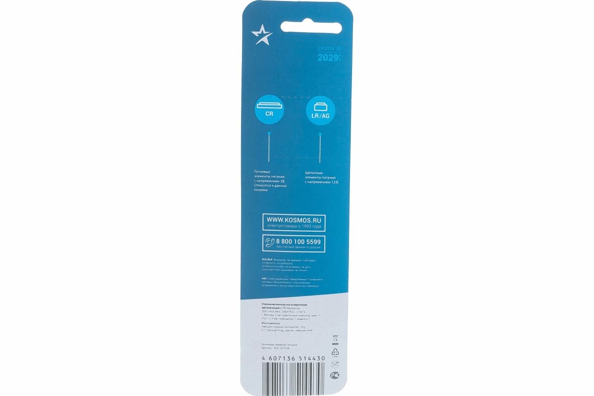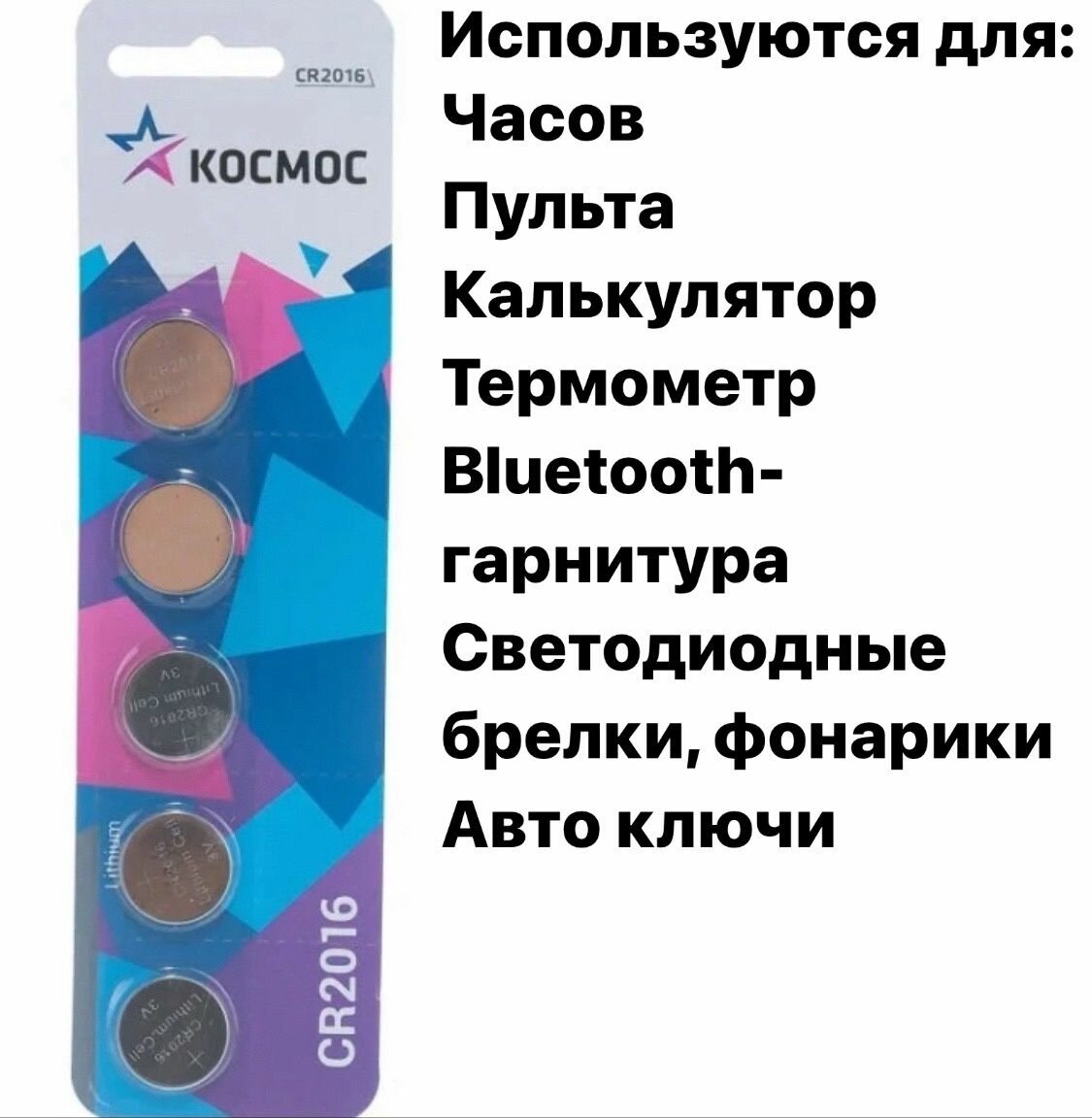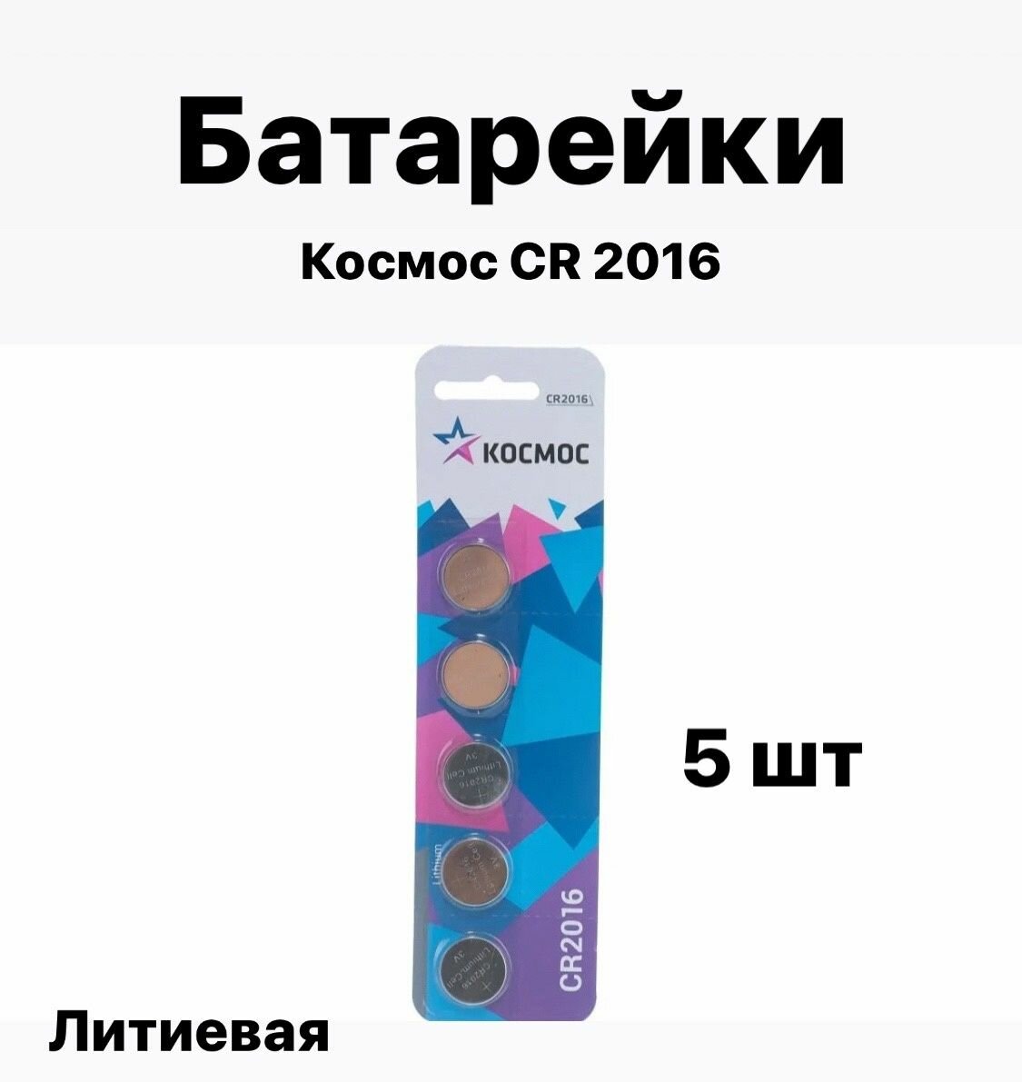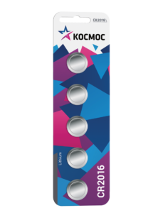 Батарейки литиевые - Космос, тип CR2016, 1.5V, 5 шт. в 1 наборе