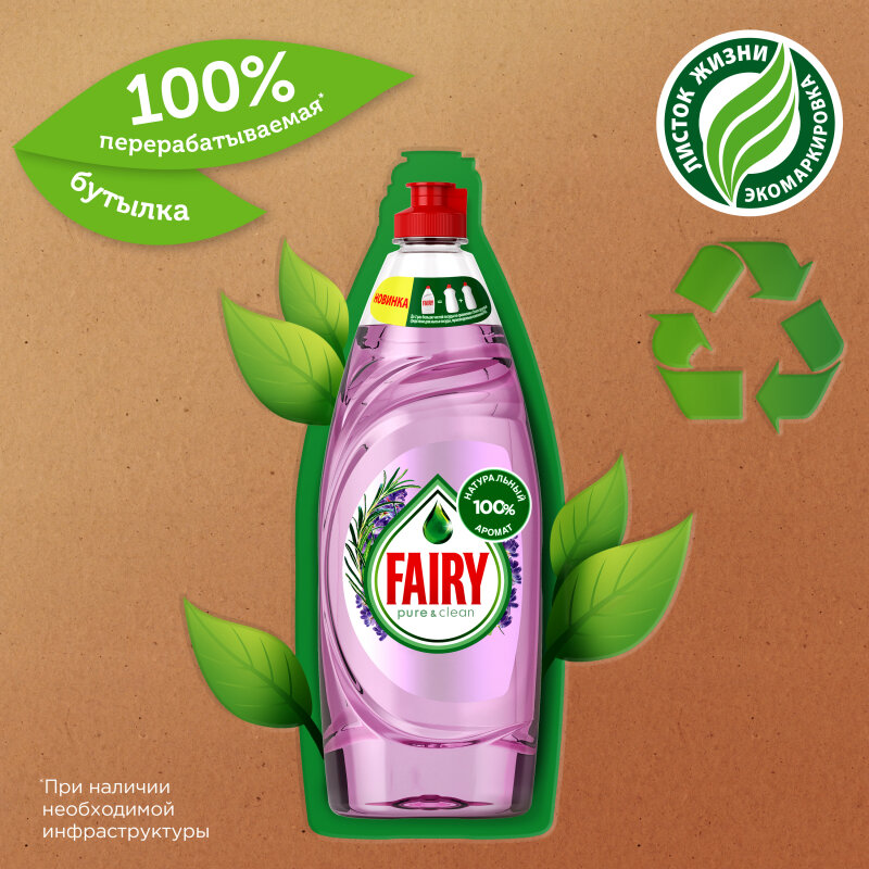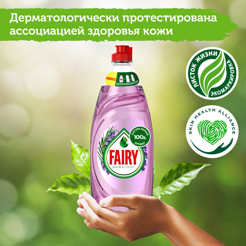 Средство для мытья посуды Fairy Pure&Clean, Лаванда и Розмарин, 650 мл