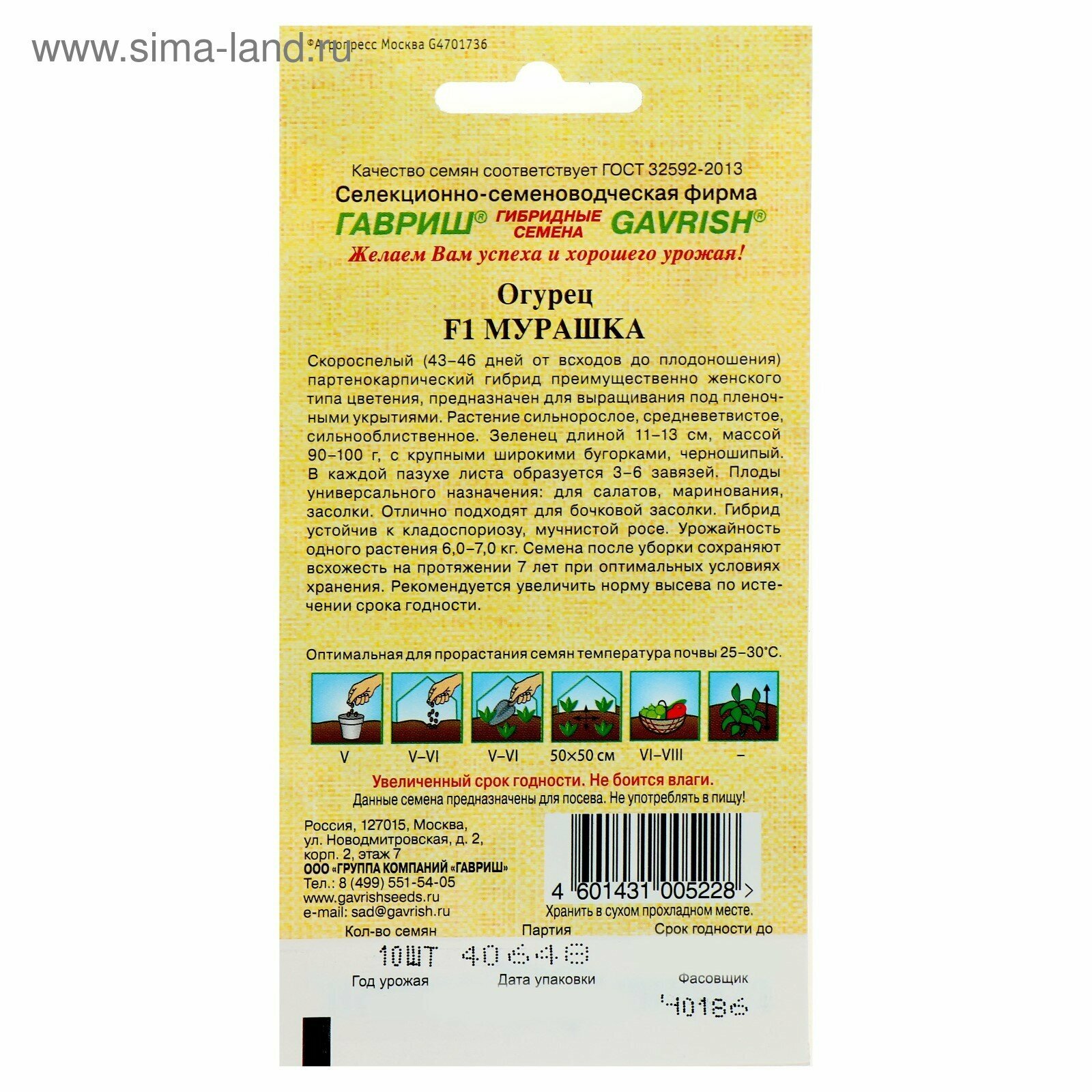 Семена Гавриш Семена от автора Огурец F1 Мурашка корнишон 10шт/1 пакет