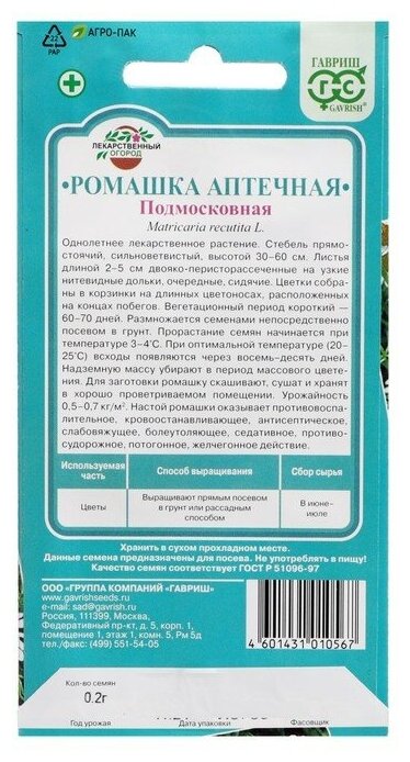 Семена Ромашка аптечная Подмосковная 0,2г интересное: