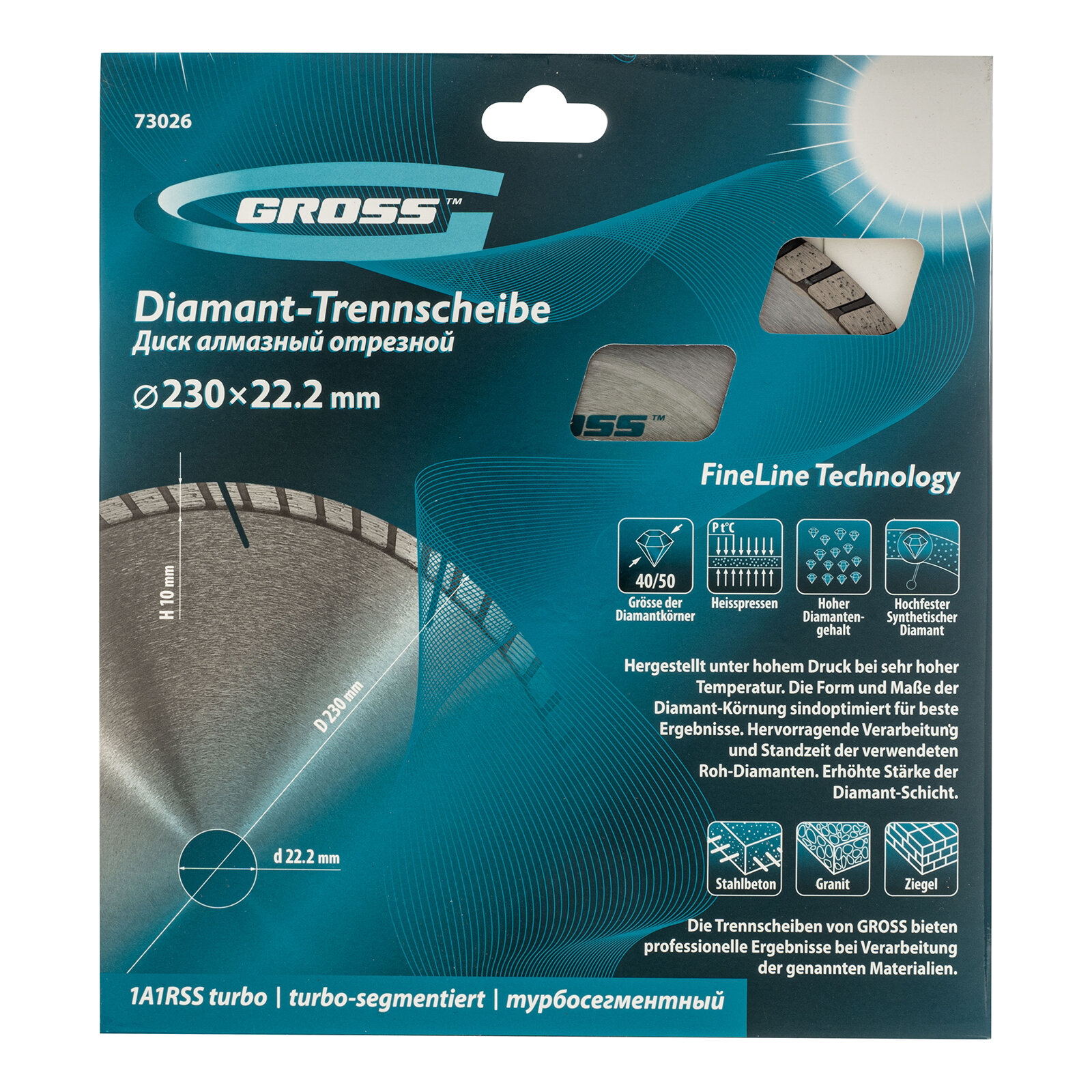 Диск алмазный Gross ф230х22,2мм, турбо-сегментный, сухое резание 73026
