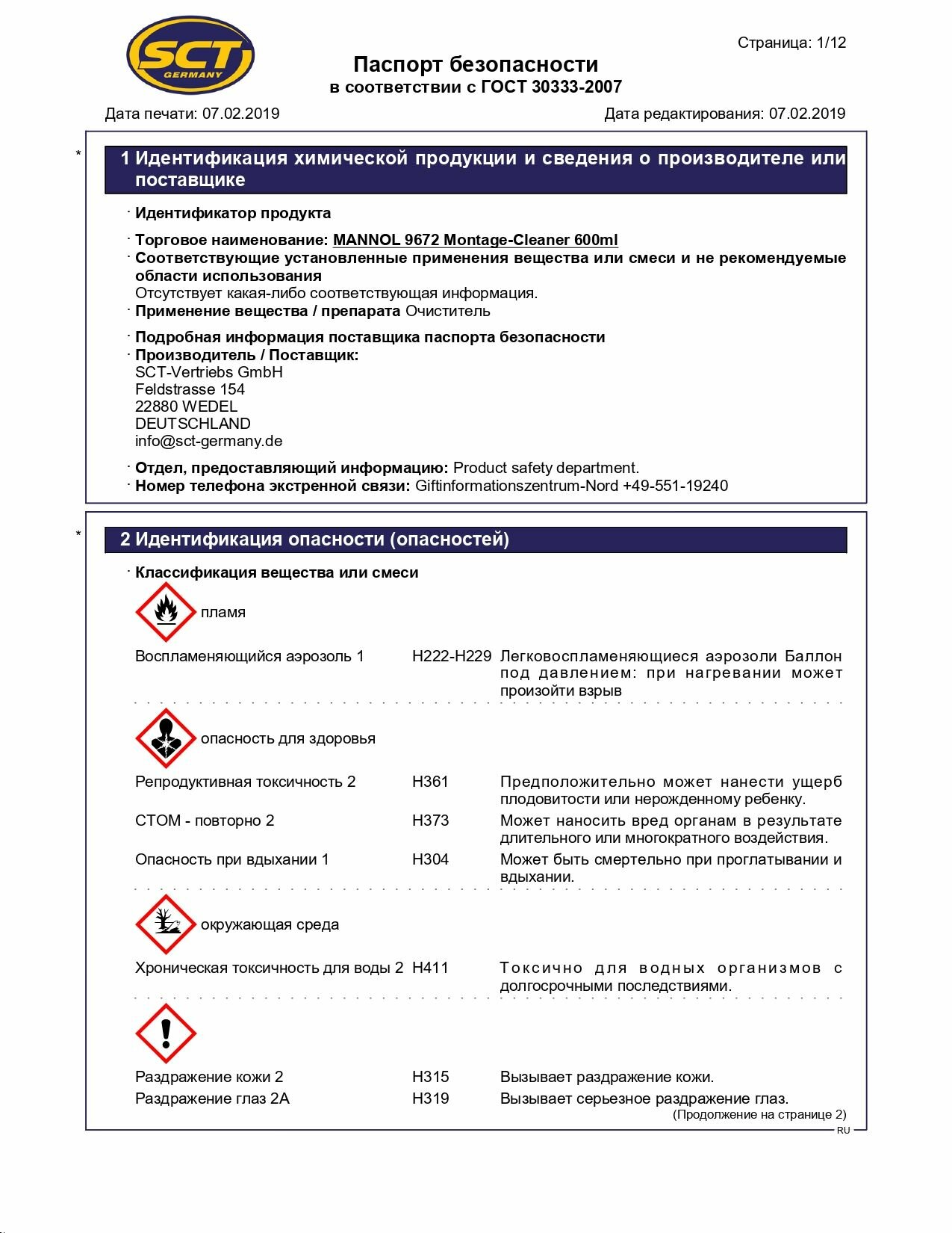 9672 Mannol Montage Cleaner 600 Мл. Очиститель Для Монтажных Работ MANNOL арт. 9672