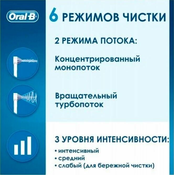 | Отзыв: | Использовал только интенсивный режим, остальные слишком слабые, но может быть у всех портативных так. Больше всего нравился режим турбопотока, неплохо вымывал остатки пищи между зубов и брекетов.