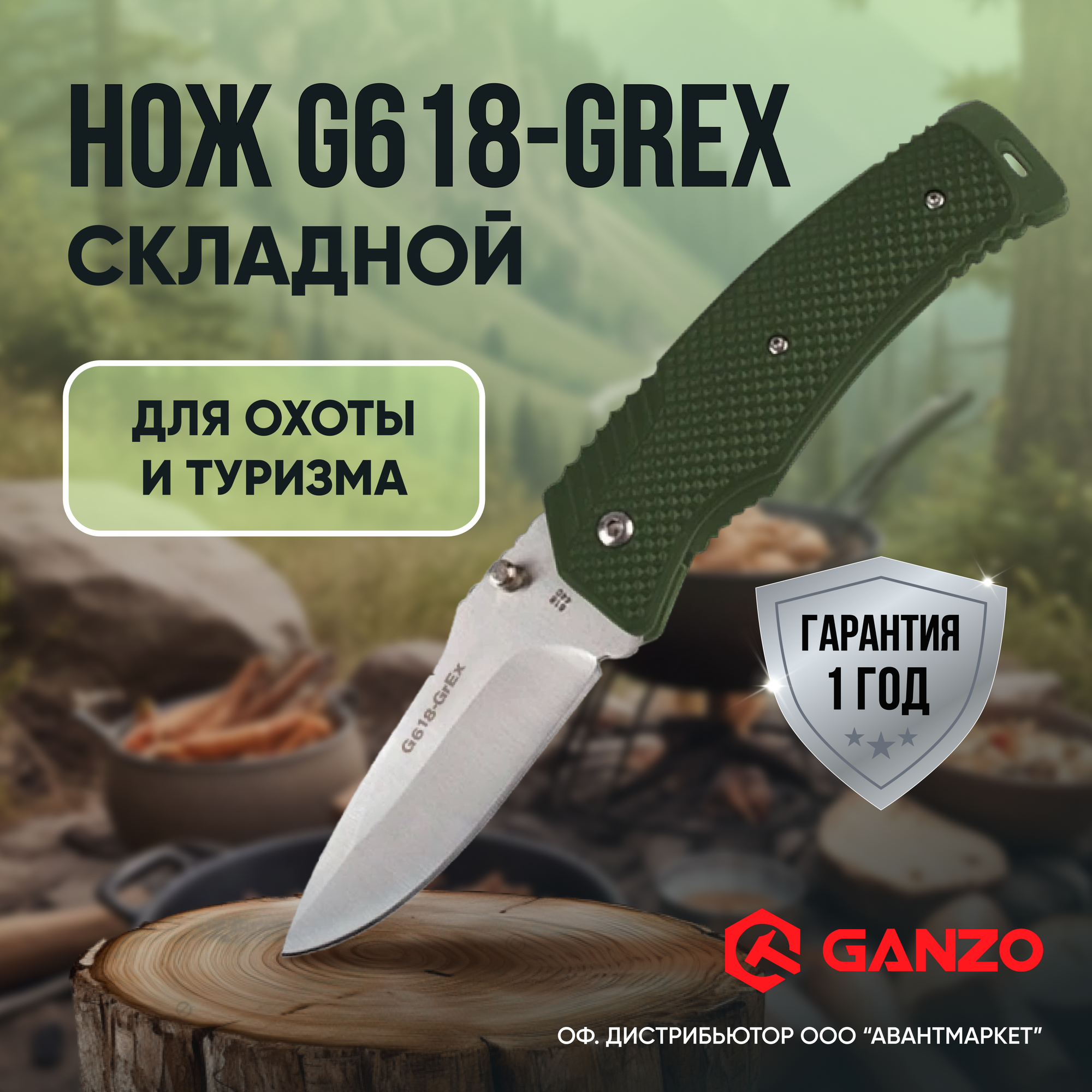 Купить Нож Ganzo G618 440 Steel Exclusive Edition Green Handle