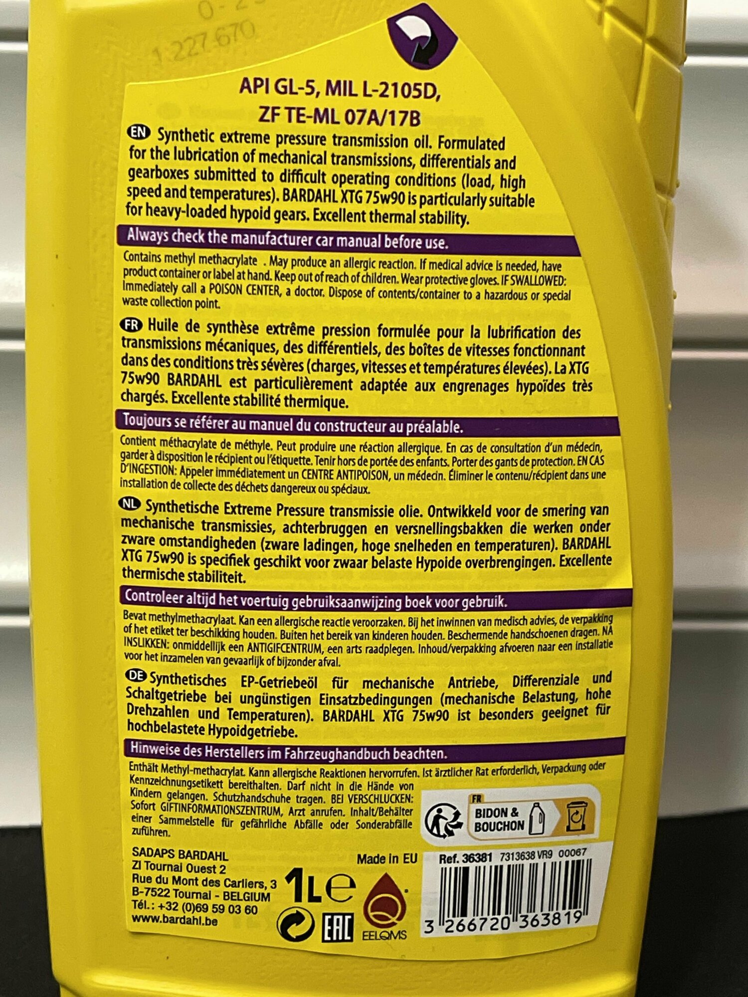 Ниже Вы можете прочитать отзывы на 75W90 XTG GL5 1L (синт. трансмиссионное масло) BARDAHL 36381, ознакомится с подробными характеристиками, посмотреть интересные обзоры и фотографии на 75W90 XTG GL5 1L (синт. трансмиссионное масло) BARDAHL 36381.