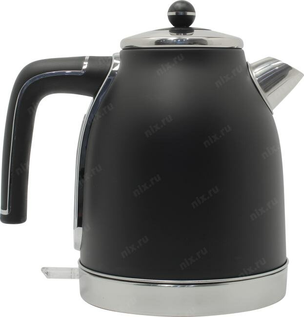 Очень стильный дизайн. Черный цвет отлично сочетается с металлическими деталями. Покрытие чайника очень приятное на ощупь, матовое. Корпус металлический, а не пластиковый (один из важнейших критериев выбора). Чайник довольно тихий, в сравнении с аналогичными по мощности электрическими чайниками. |