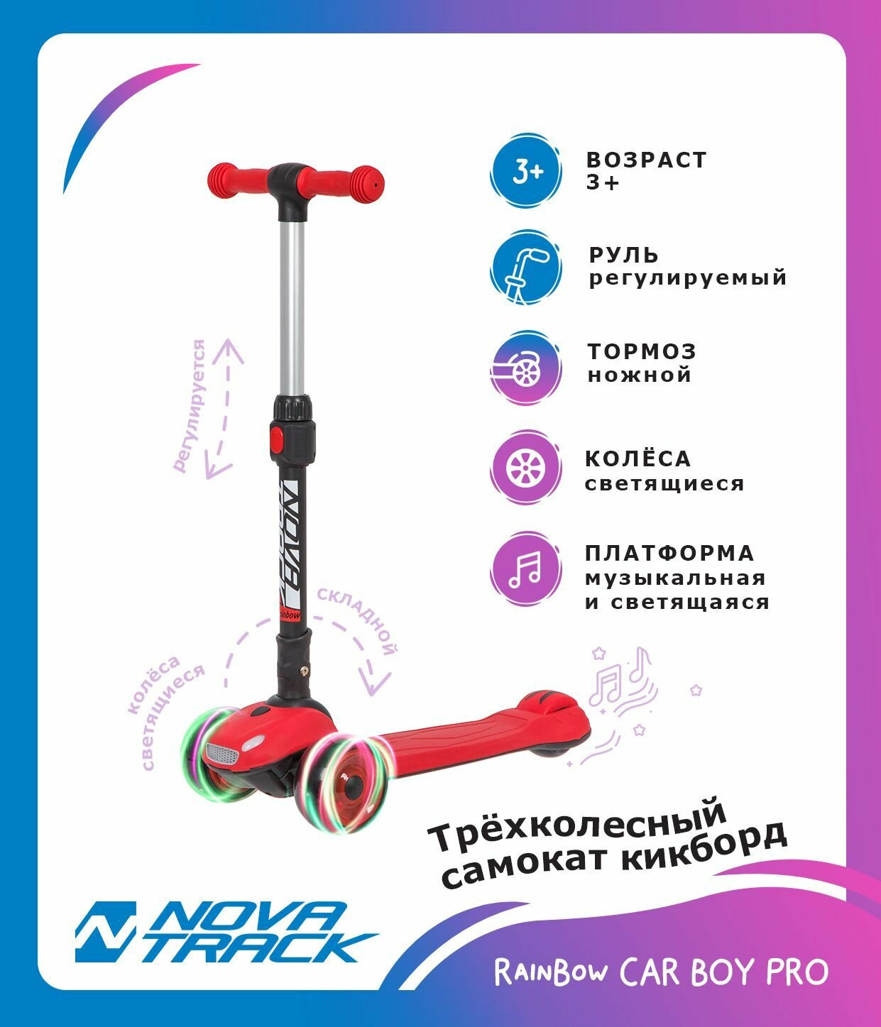 Купить Самокат Novatrack Rainbow Car Boy Pro (2020) Красный