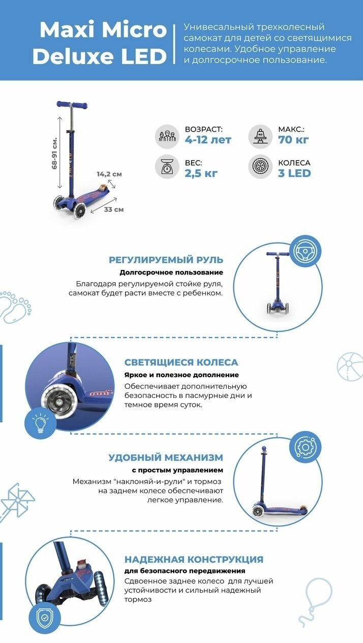 Самокат Micro Maxi Deluxe LED (2022) (синий)