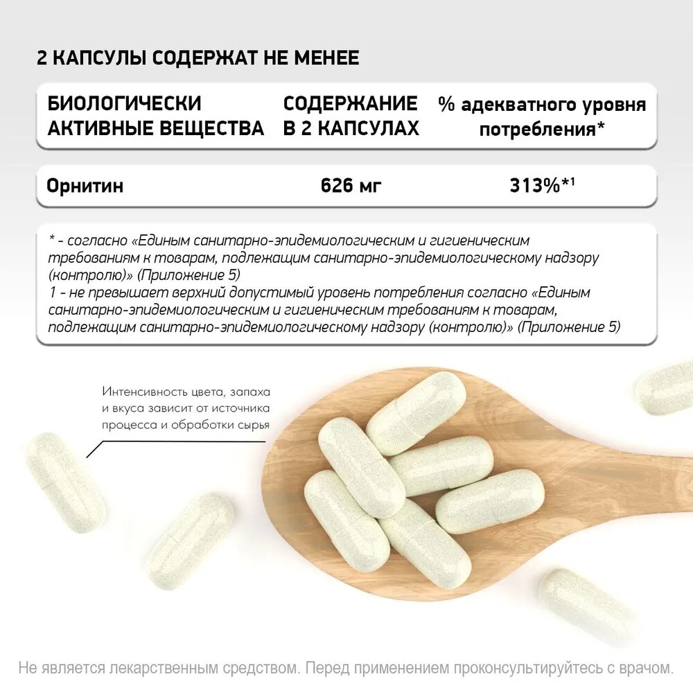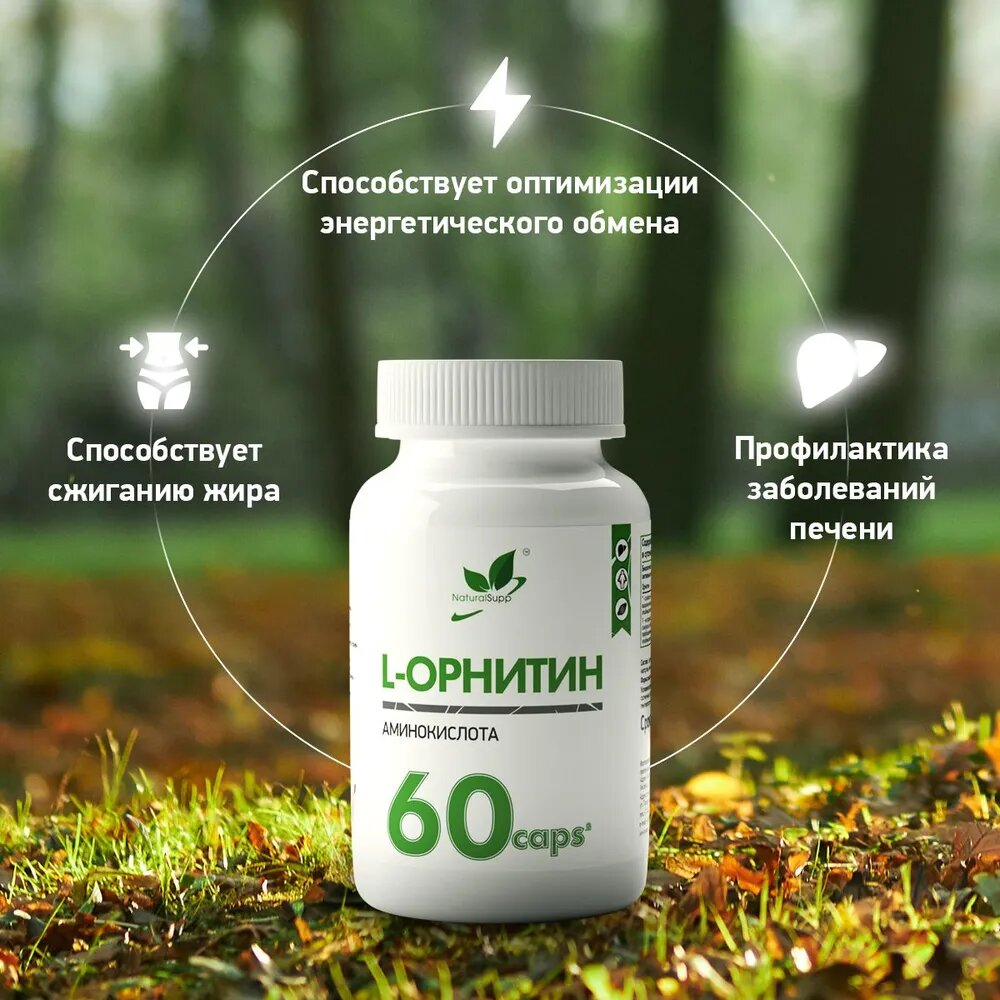 Купить L-Орнитин / БАД для тренировок / Аминокислоты для набора мышечной массы и выносливости / 60 капс. NaturalSupp