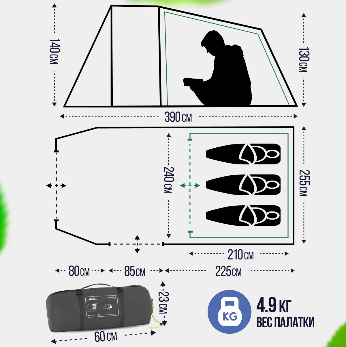 Палатка четырехместная TREK PLANET Ventura 4, цвет: зеленый