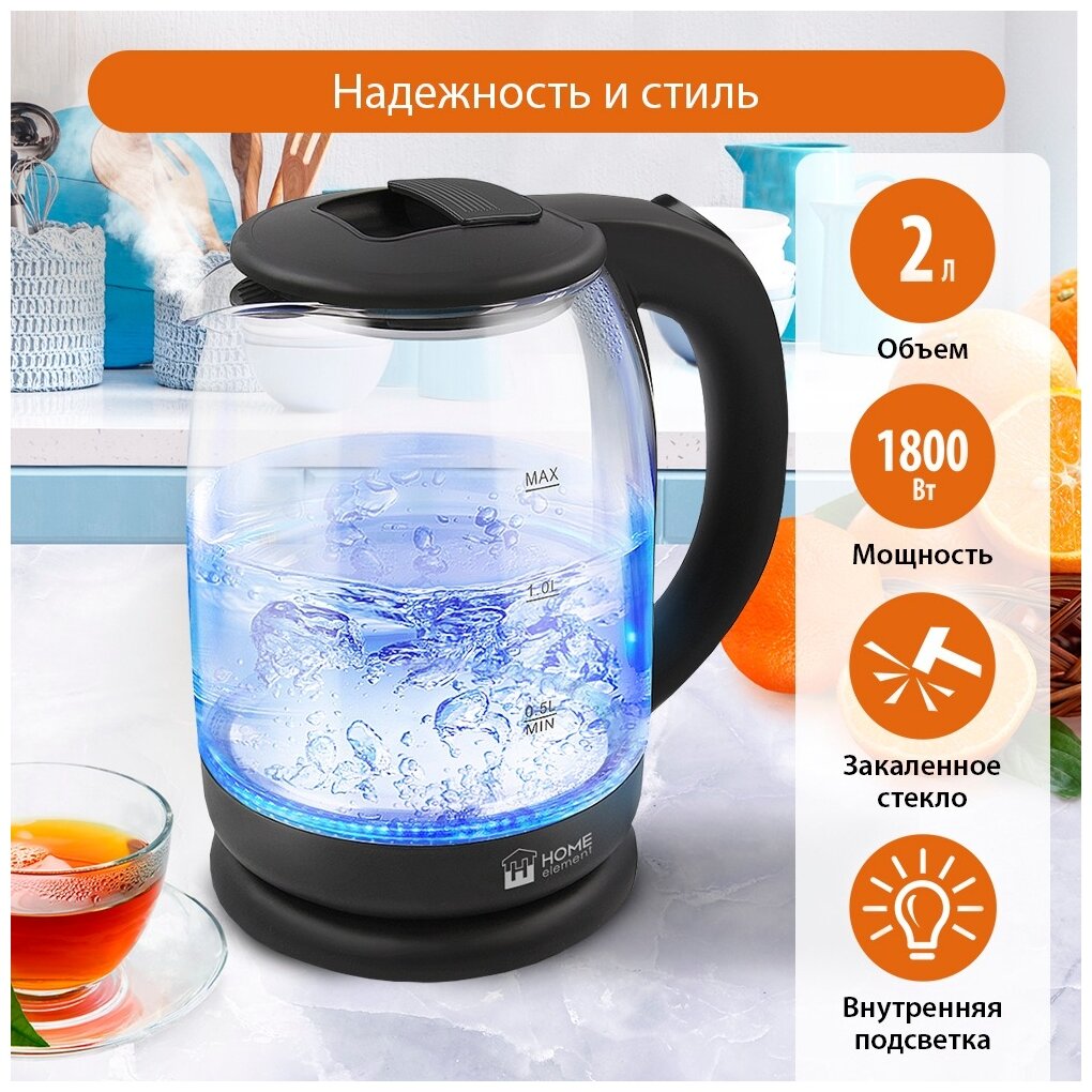 Чайник электрический Home Element HE-KT186 стеклянный черный жемчуг
