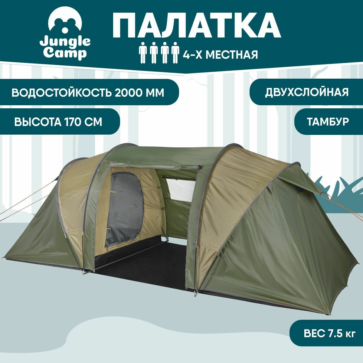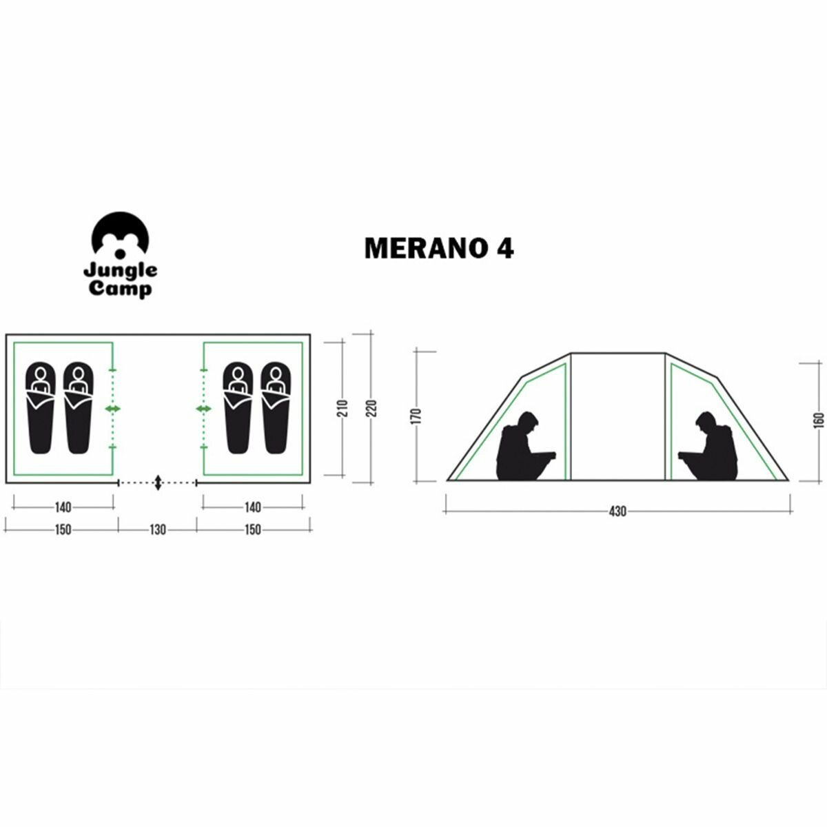 Jungle Camp Палатка четырехместная Merano 4, цвет: зеленый 70832