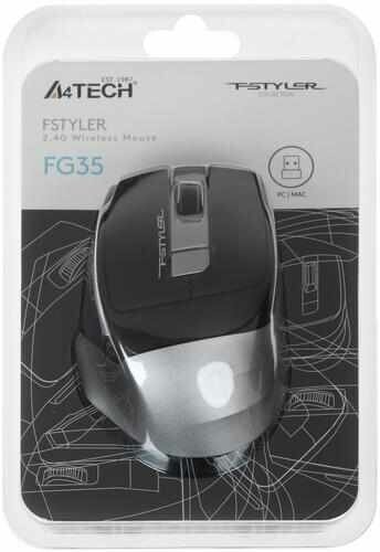 Мышь беспроводная A4Tech Fstyler FG35, 2000dpi, Wireless/USB, Серый/Черный, FG35 GREY