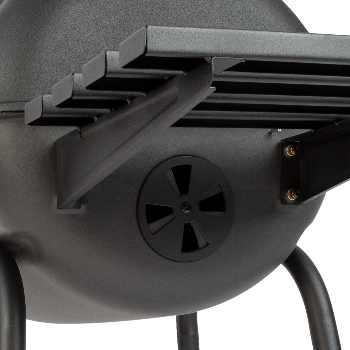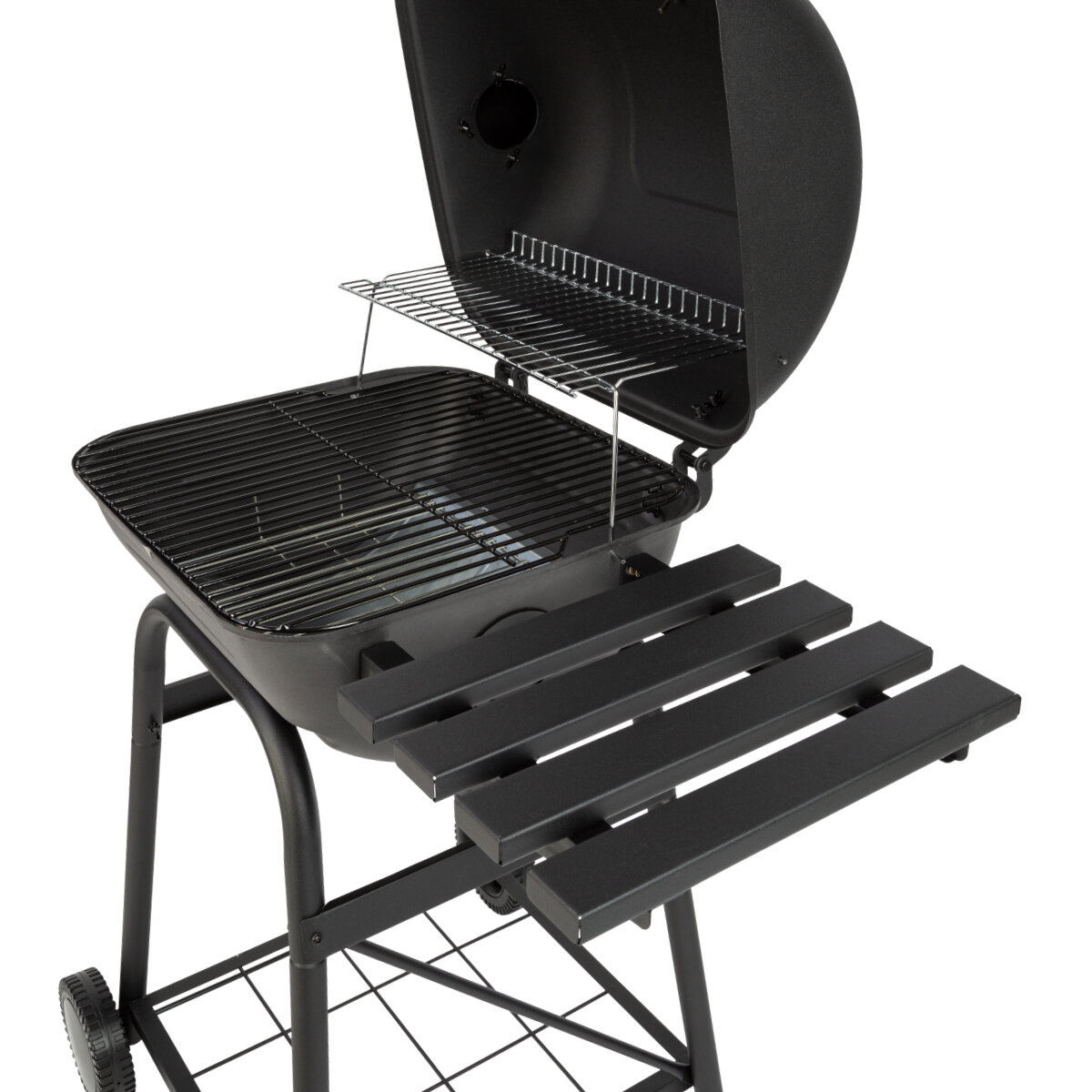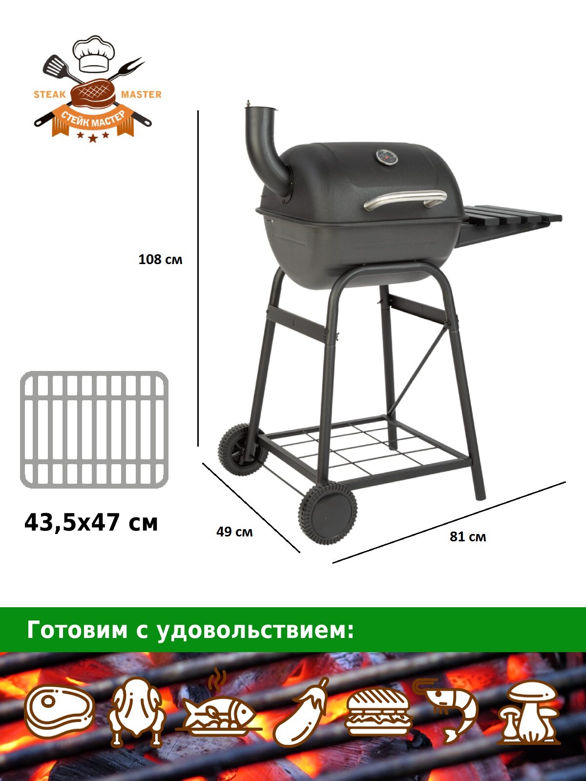 Компактный, для небольшой семьи отличный размер , угля входит ровно на 1 стартер. Коптили, жарили, запекали все прекрасно получается. Удобная полка для готовых продуктов ,чтобы не остывали пока что-нибудь ещё готовишь. |
