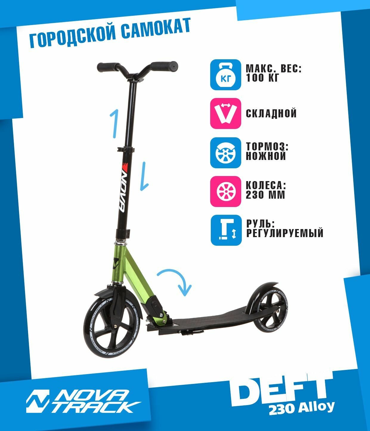 самокат 2-х колесный 230/180 мм городской подростковый deft алюминиевый складной 70 кг novatrack 230.deft.lm21