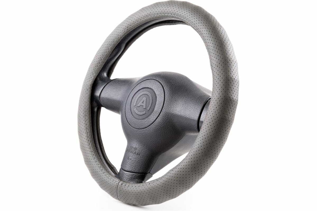 Оплетка на руль Top-12 SKYWAY M (37-39) серый экокожа, S01102501