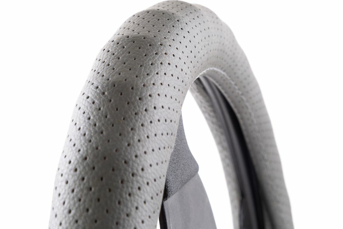 Оплетка экокожа серая перфорированная, ребристая основа размер M AP-1912 D.GY (M)