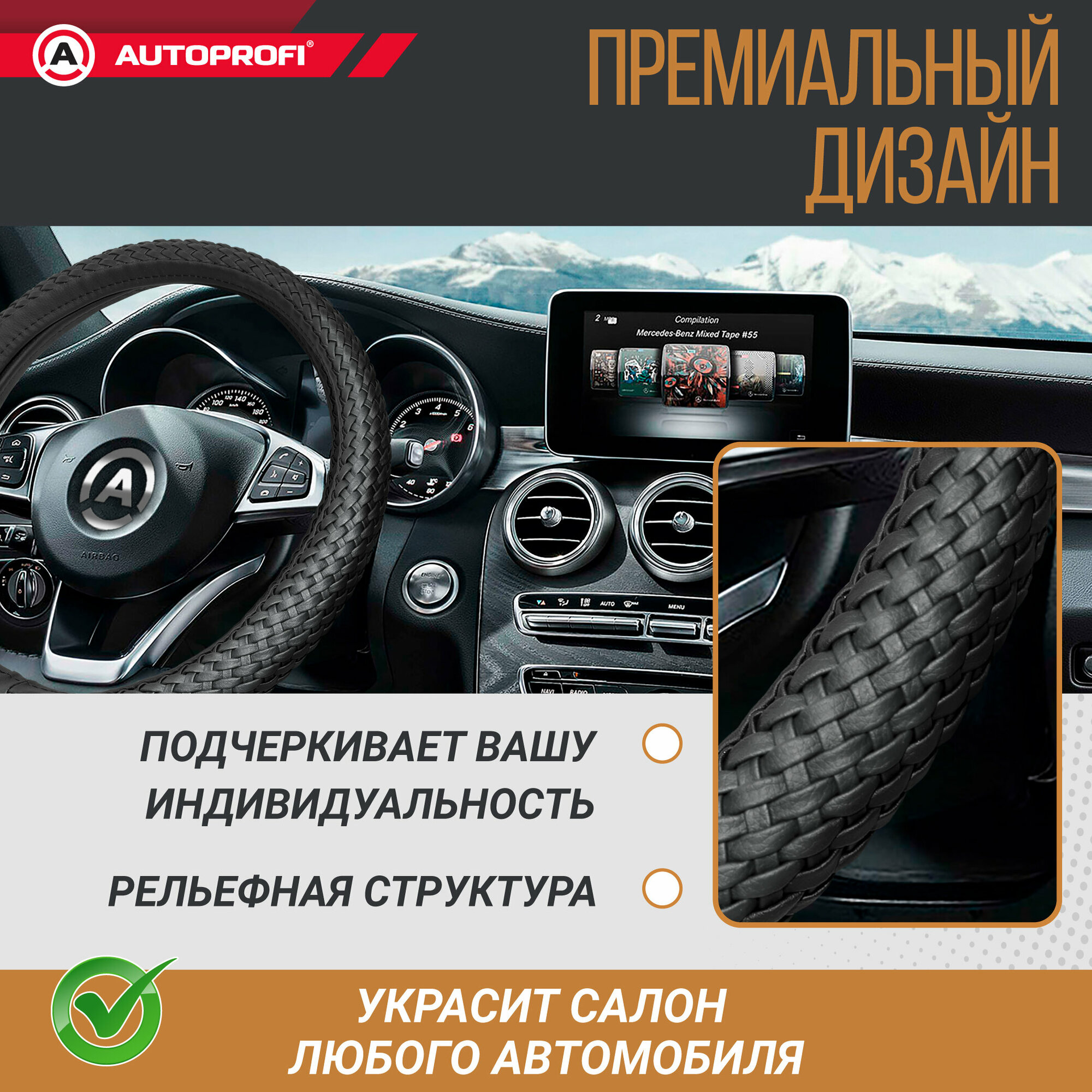 Оплетка на руль AUTOPROFI, экокожа, на руль 37-39 см, AP-800 BK (M)