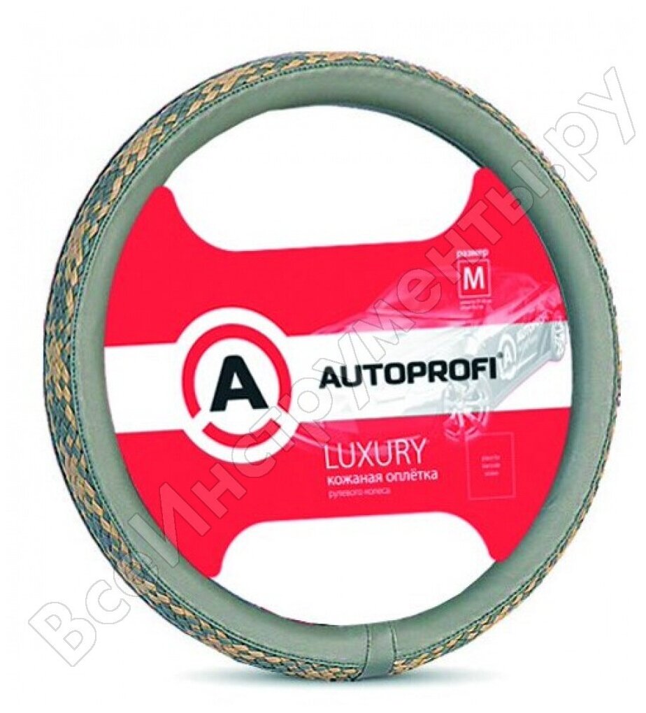 Оплётка руля Autoprofi Luxury натуральная кожа с плетением серая/бежевый M
