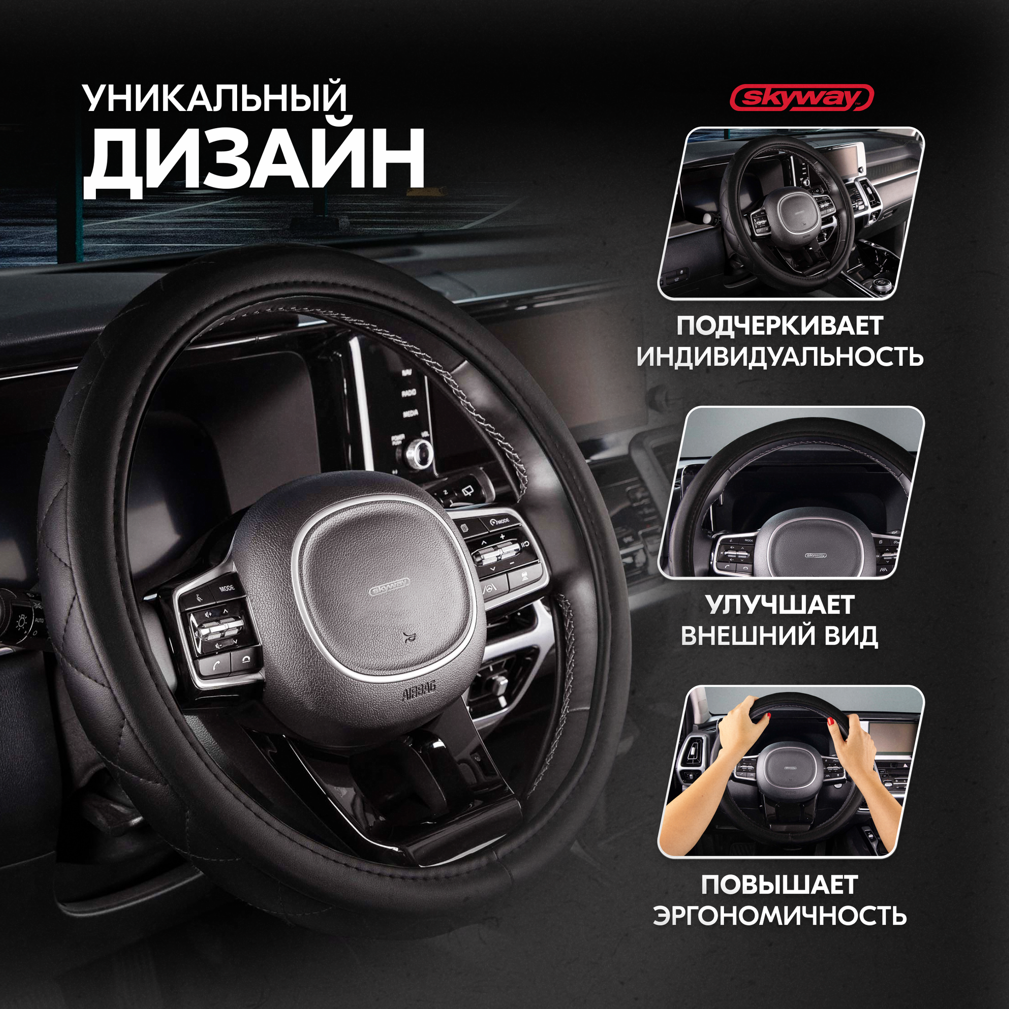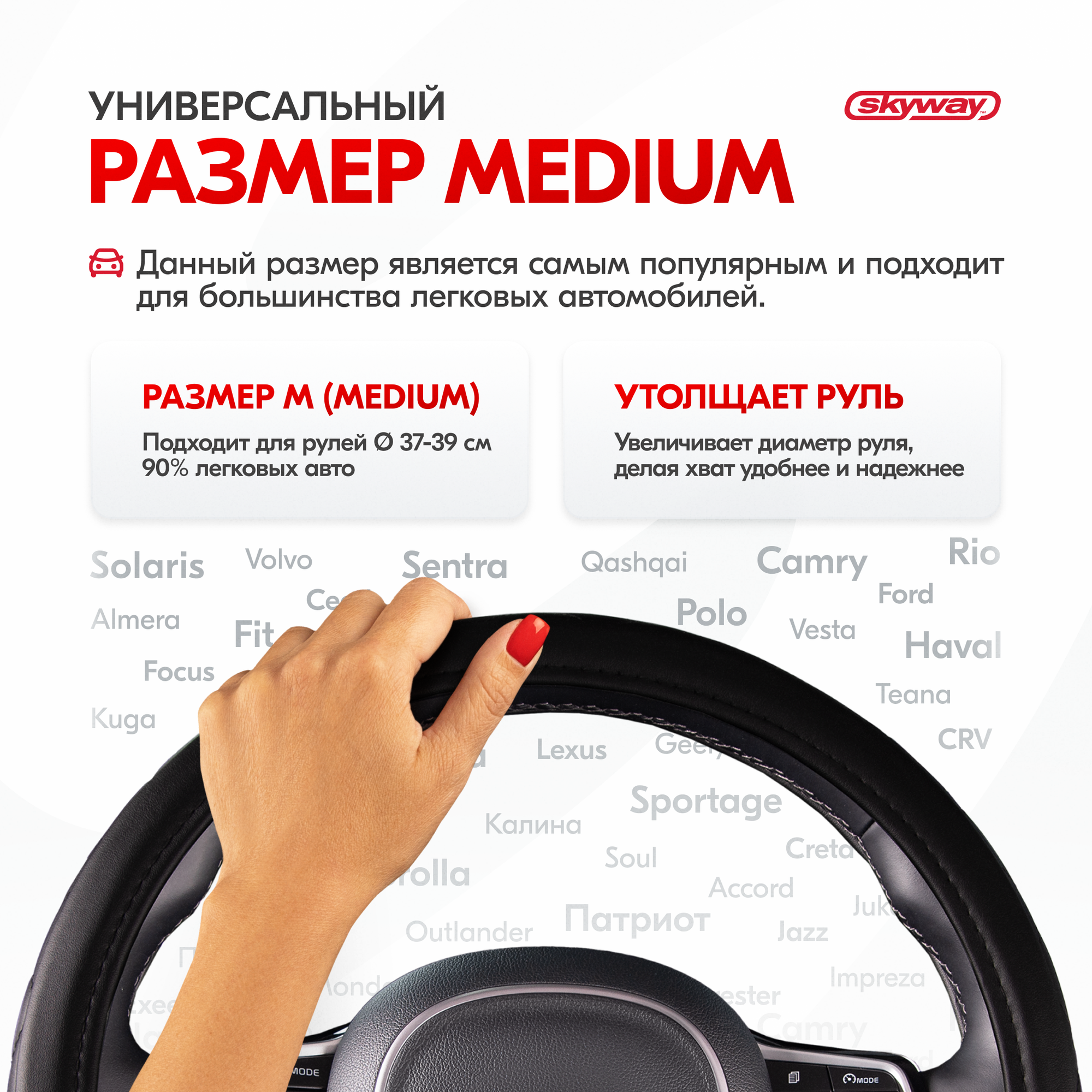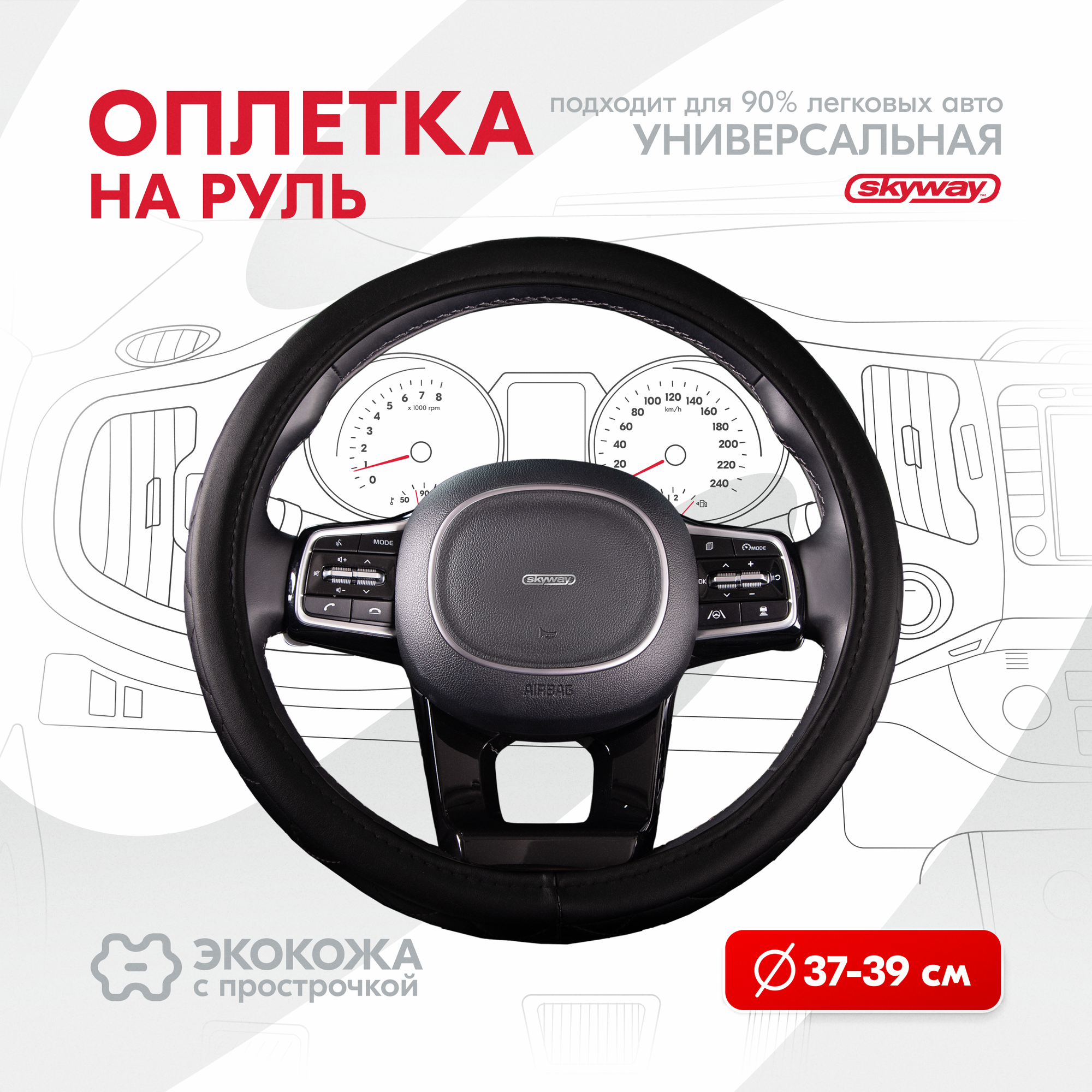 Оплетка SKYWAY "Hit 2" для руля, экокожа, размер M, диаметр 37/38/39 см, S01102054