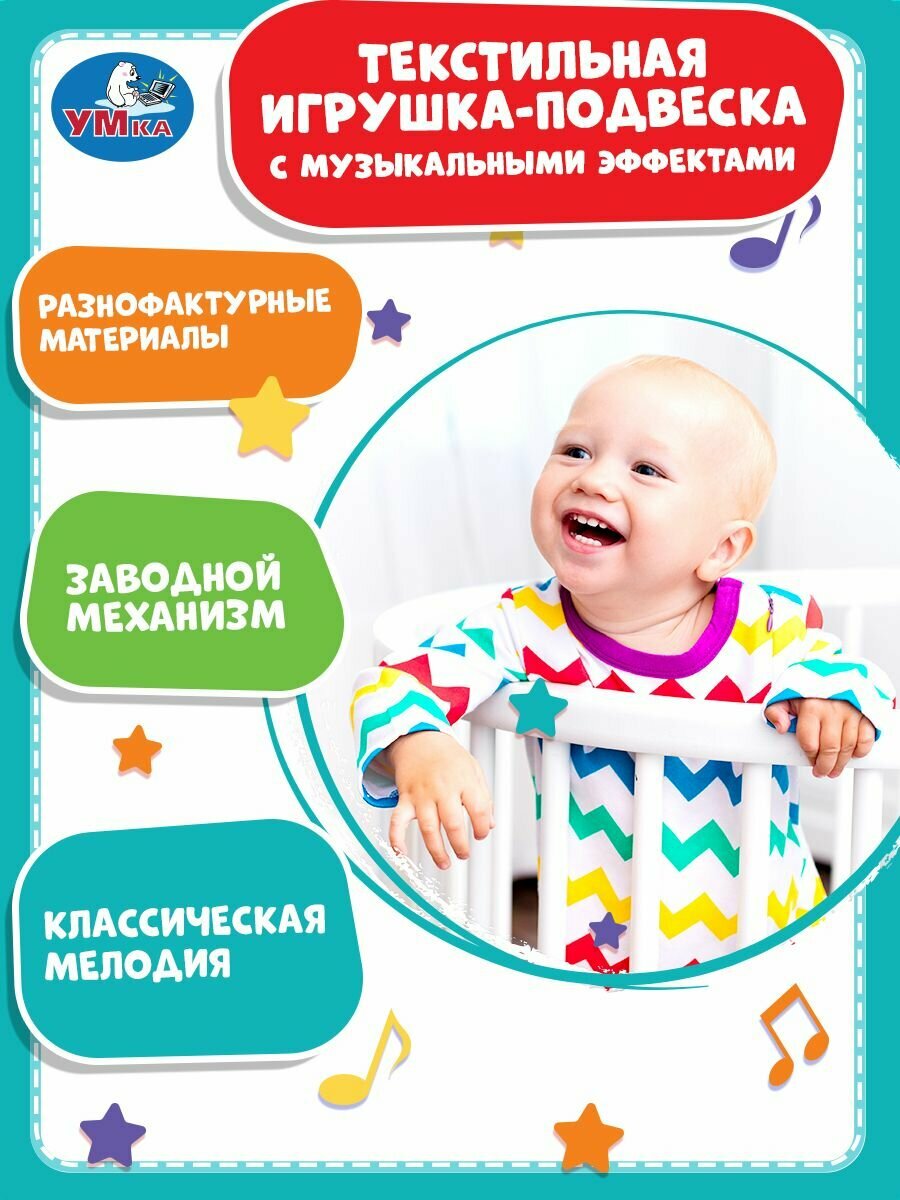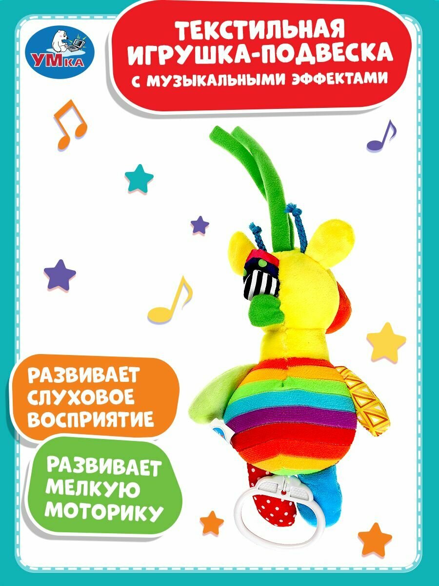 Подвеска с музыкой весёлый жирафик 20 см классическая мелодия, зеркальце, гремящие шарики умка RM-G3 (150)
