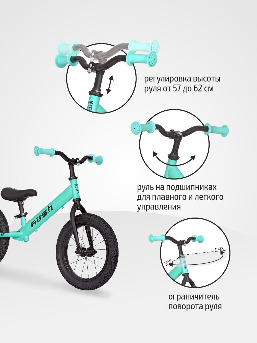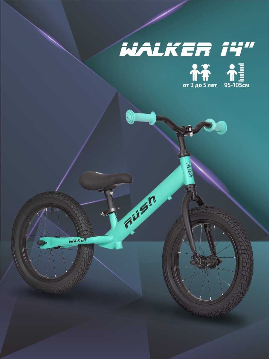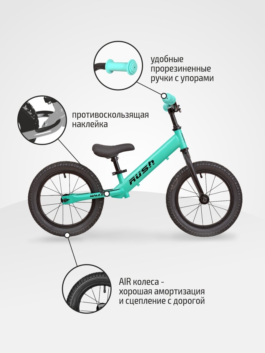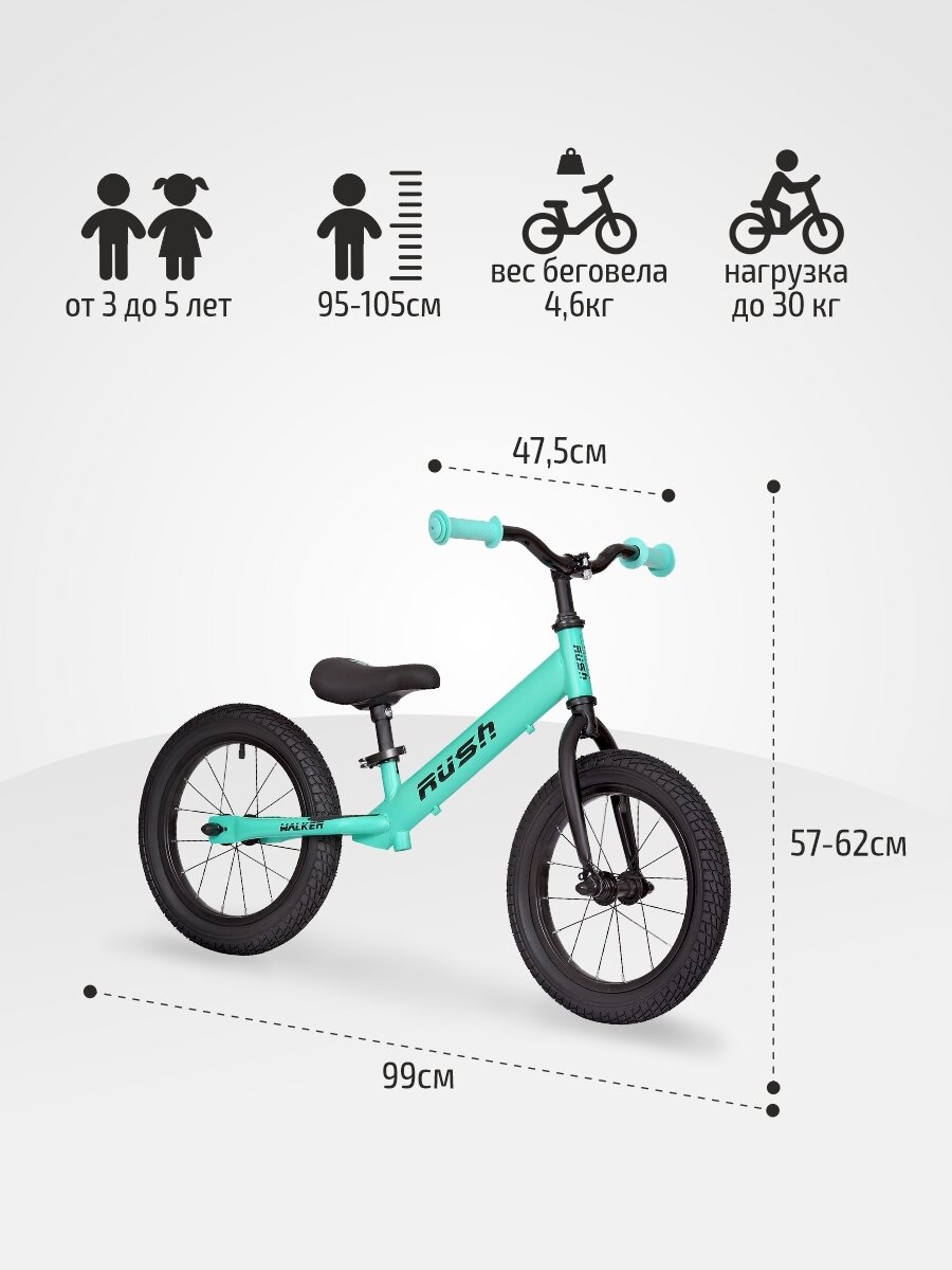Беговел 14" RUSH HOUR WALKER рост 95-105 см мятный. Детский транспорт для малышей 3, 4 года 5 лет велобег самокат без педалей толокар легкий мотоцикл