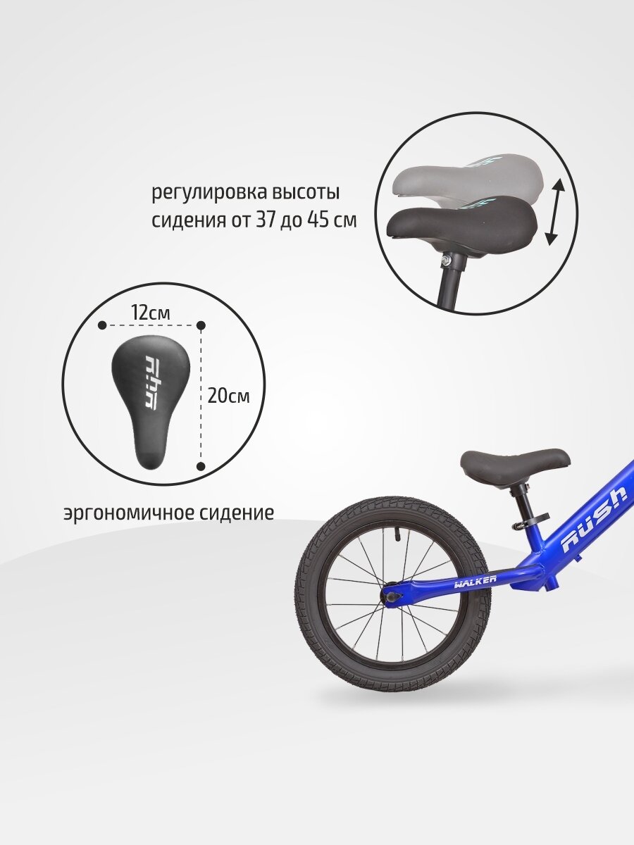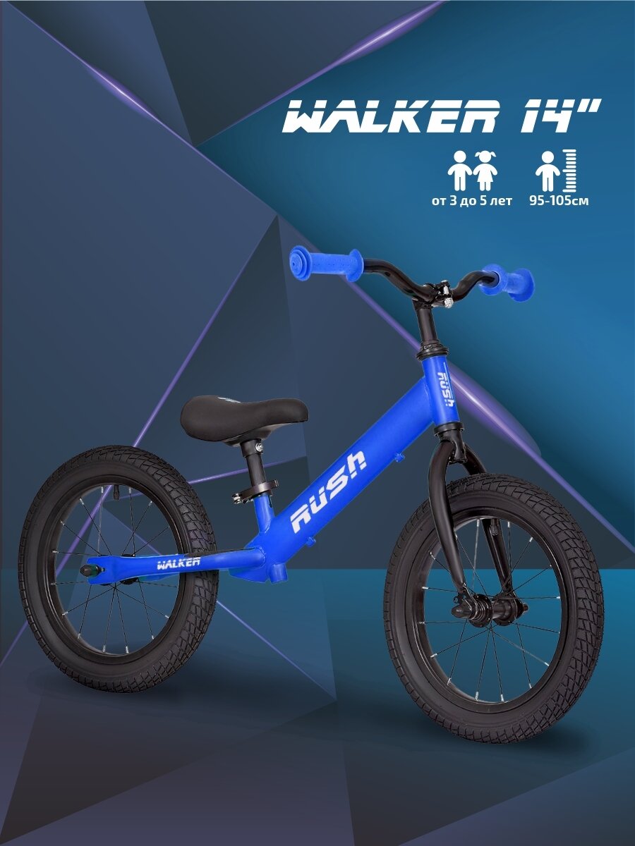 Беговел 14" RUSH HOUR WALKER рост 95-105 см синий. Детский транспорт для малышей 3, 4 года 5 лет велобег самокат без педалей толокар легкий мотоцикл