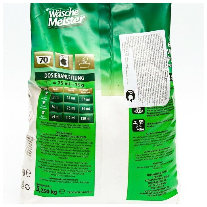 Wasche Meister Waschpulver Universal Стиральный порошок универсальный 5,25 кг на 70 стирок в мягкой упаковке