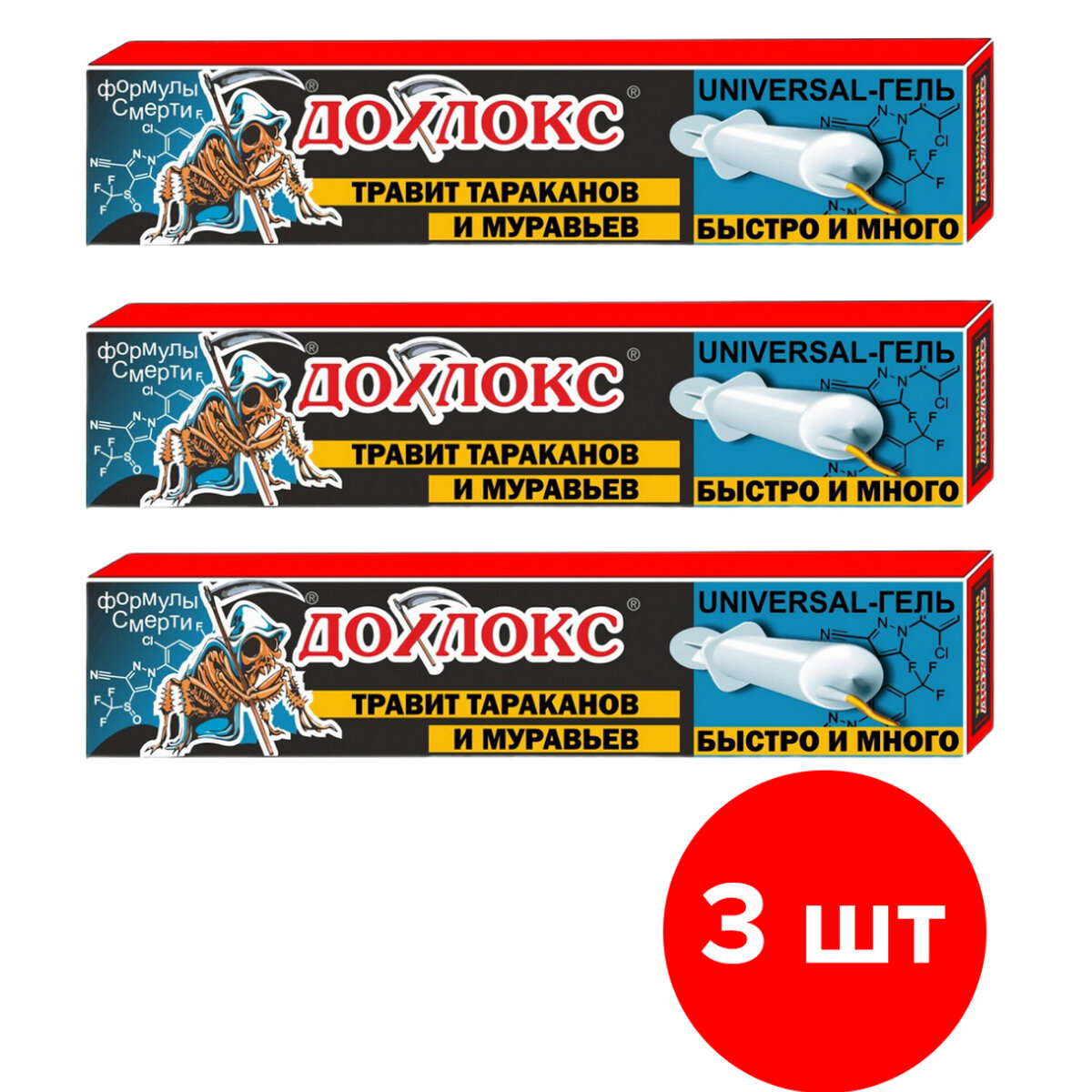 Купить Гель от тараканов и муравьев Дохлокс Universal шприц, 3 шт по 20 мл (60 мл)