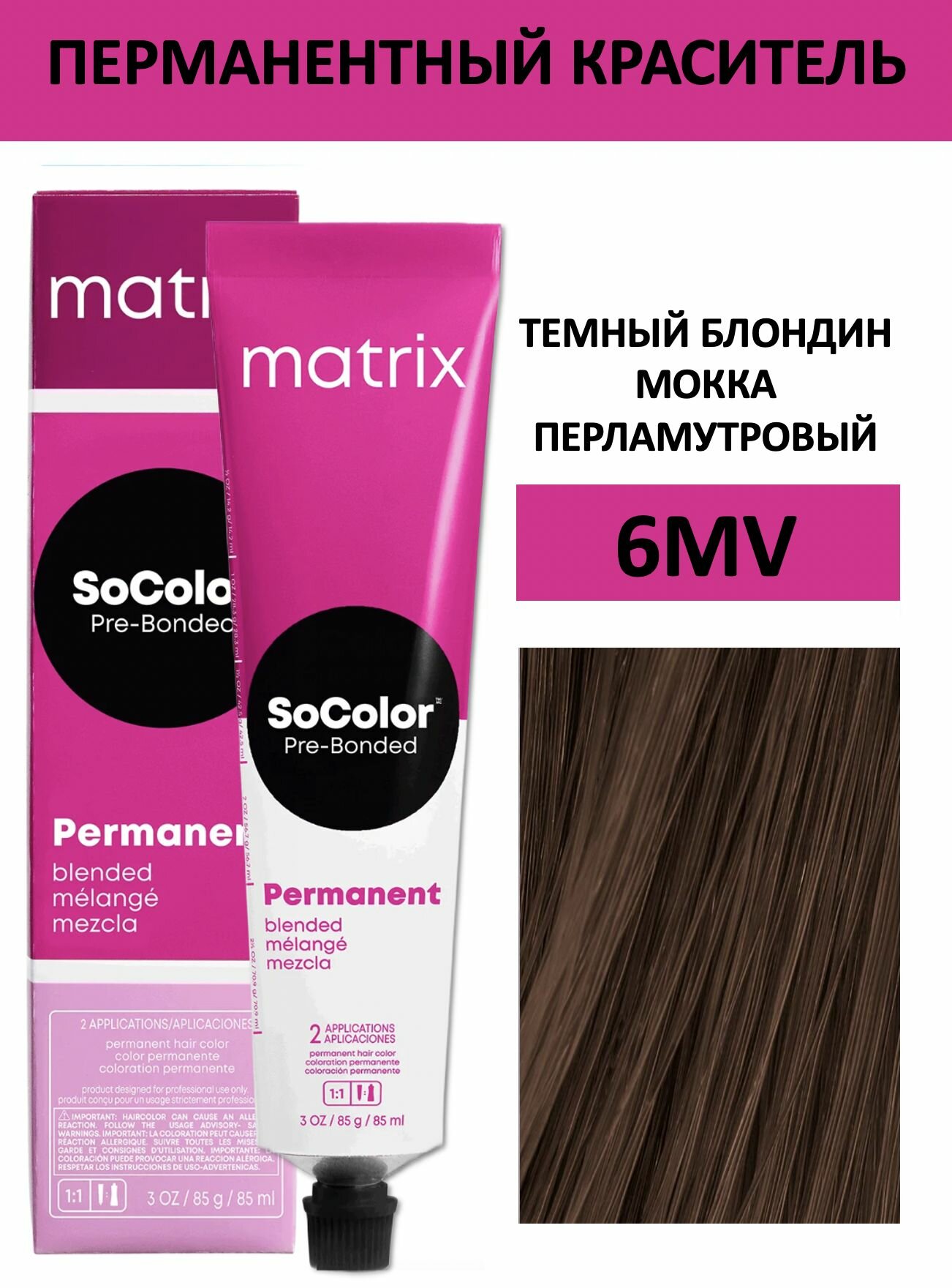 Matrix SoColor перманентная крем-краска для волос Pre-Bonded, 6Mm темный блондин мокка мокка, 90 мл