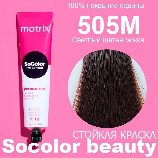 Купить Matrix SoColor крем краска для волос 505M светлый шатен мокка 100% покрытие седины 90мл