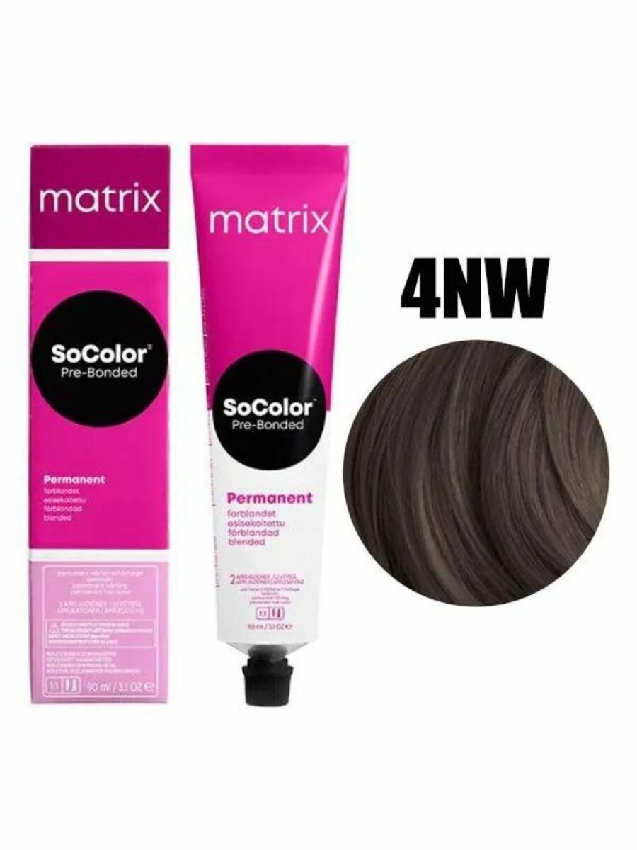 Matrix SoColor 4NW Крем-краска стойкая для волос натуральный теплый шатен,90 мл