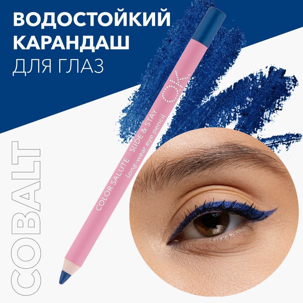 Стойкий карандаш для глаз OK BEAUTY COLOR SALUTE SLIDE & STAY long-wear eye pencil, тон Cobalt