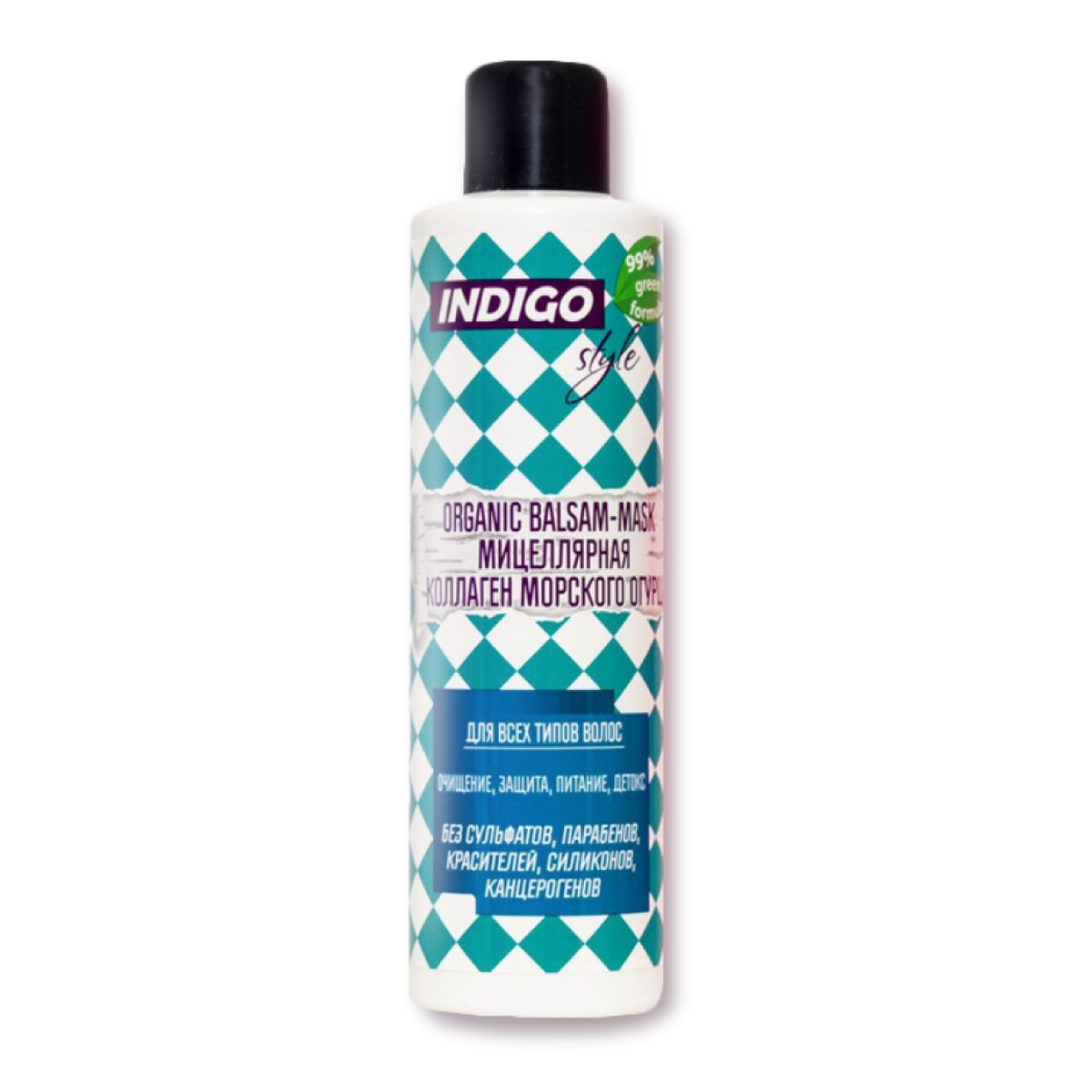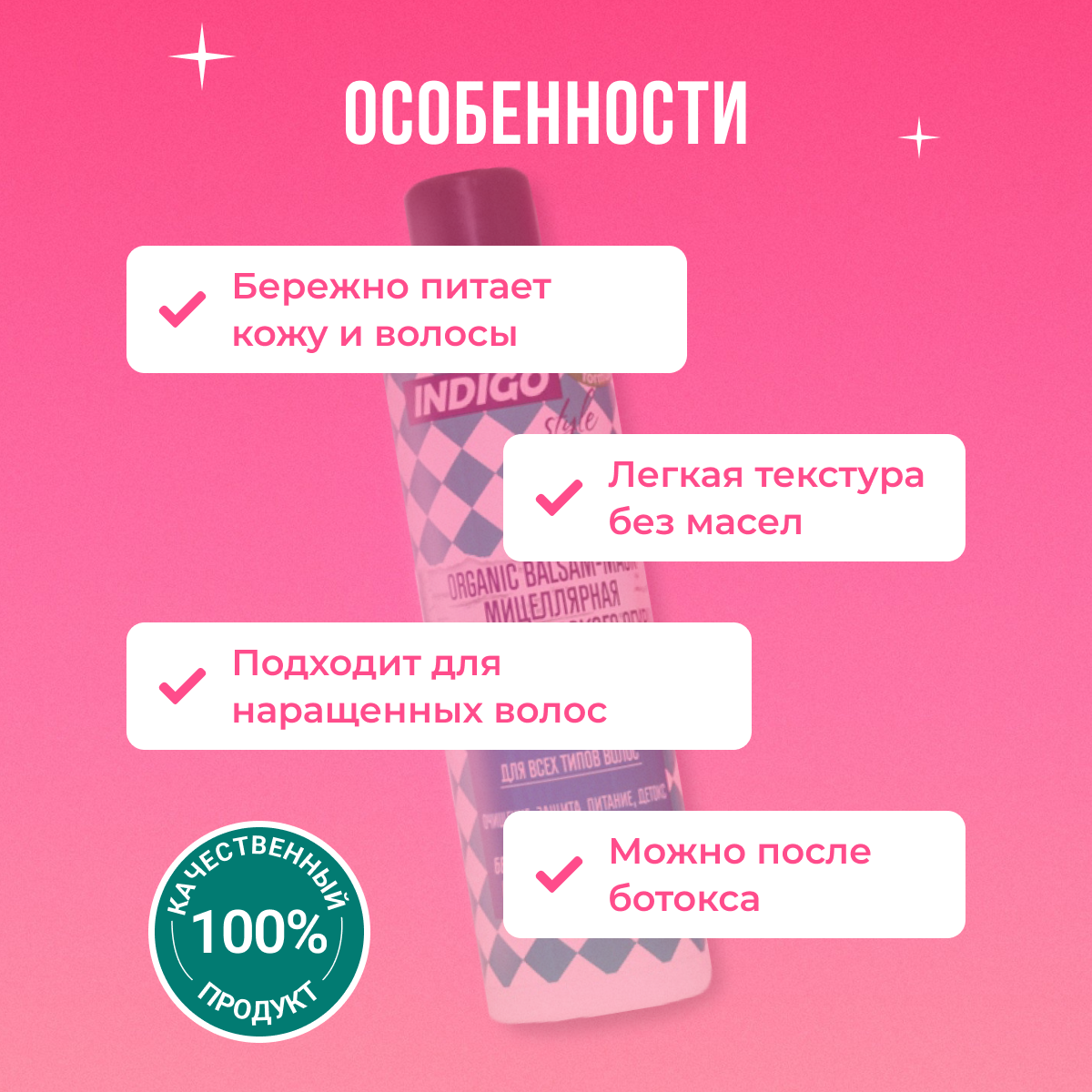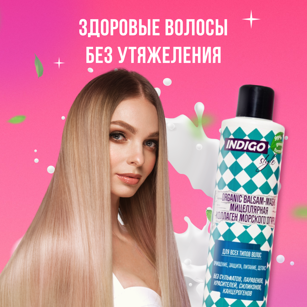 Indigo Style Органик бальзам-маска для волос мицеллярная, увлажняющая, профессиональная, без сульфатов, парабенов и красителей 200 мл